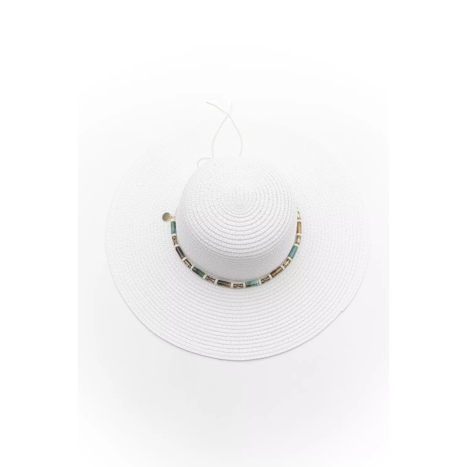Γυναικείο καπέλο με πλατύ γείσο ψάθινο με διακοσμητικές χάντρες. Summer must για προστασία από τον ήλιο.