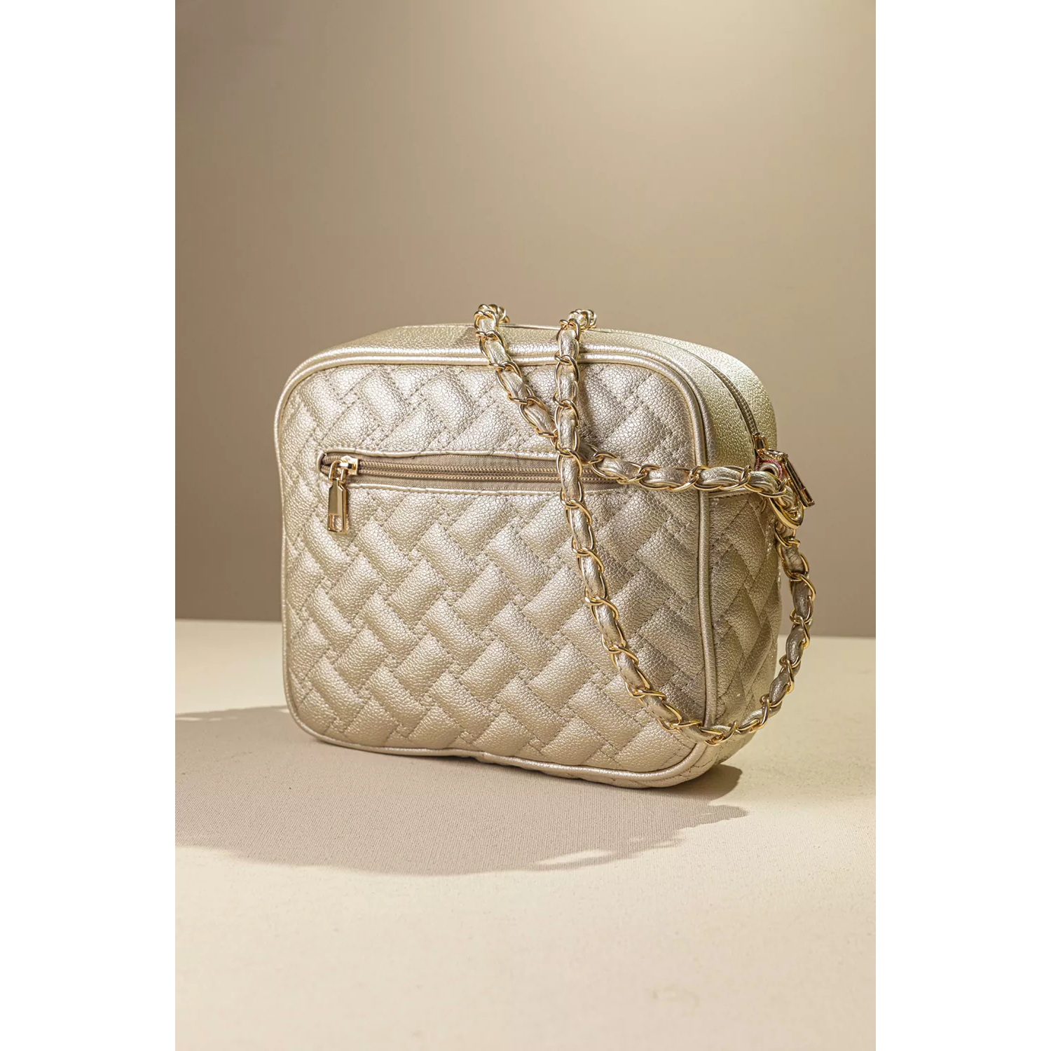 • Μικρή cute τσάντα με καπιτονέ υφή. • Ενιαίος χώρος αποθήκευσης που κλείνει με φερμουάρ και τα κλασικά τσεπάκια στη φόδρα. • Η αλυσίδα της προσφέρει ένα υπέροχο στιλ. • Μπορεί να φορεθεί χιαστί ή ώμου! Υλικό: Μαλακό συνθετικό δέρμα με ιδιαίτερα puffy γαζιά.