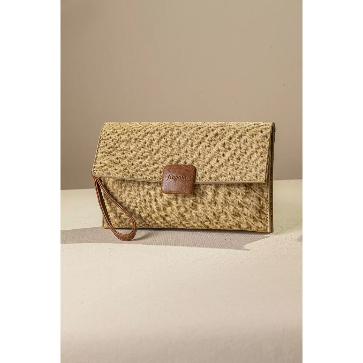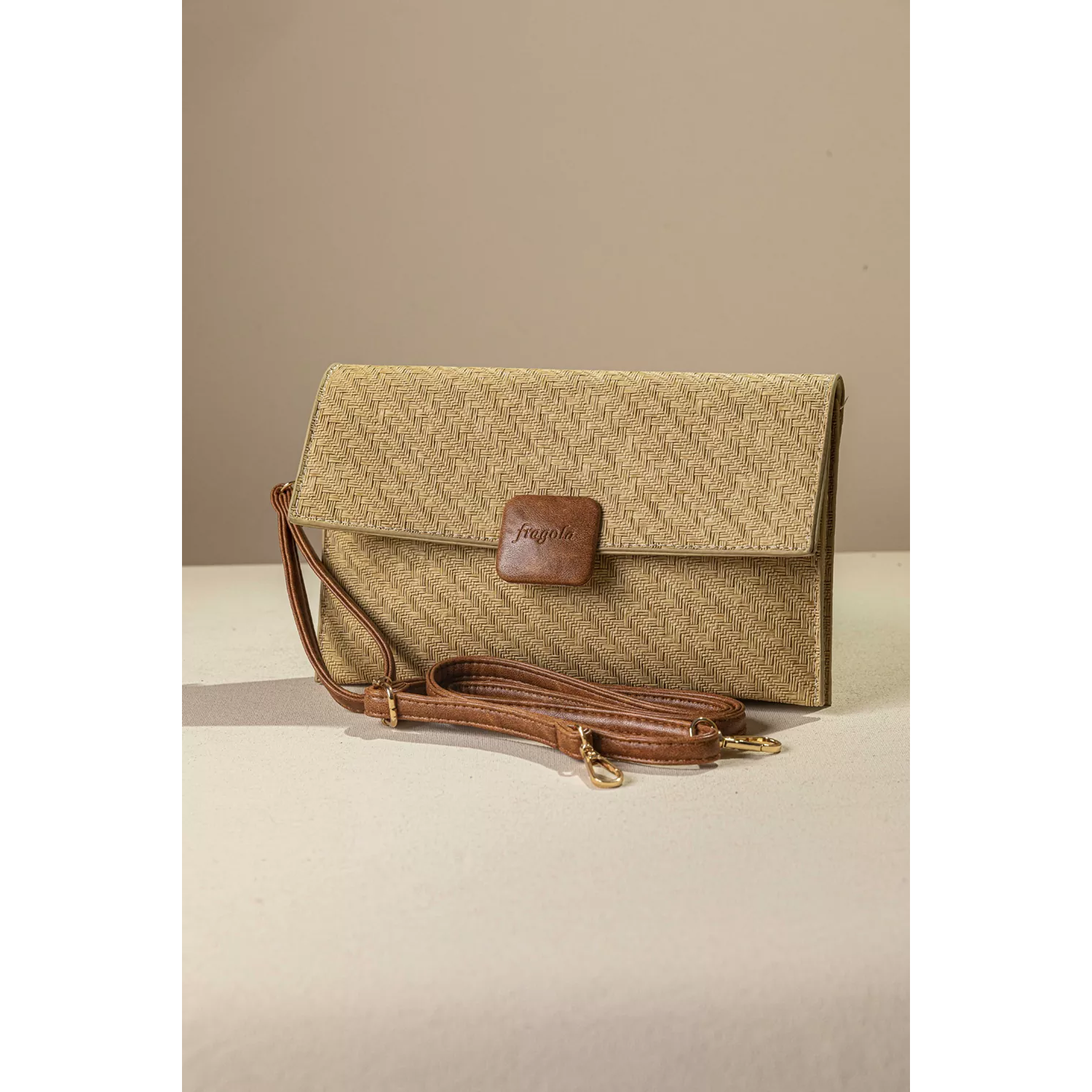 • Κομψός και διαχρονικός διθέσιος φάκελος, ιδανικός για καθημερινές αλλά και πιο ιδιαίτερες εμφανίσεις. • Κατασκευασμένος από συνθετικό δέρμα με ανάγλυφη ψάθινη υφή, προσφέρει φυσικό χαρακτήρα και καλοκαιρινό στυλ. • Ενώ οι διακριτικές λεπτομέρειες προσθέτουν μια elegant πινελιά. Διαθέτει καπάκι με σταθερό κλείσιμο με το λογότυπο μας. • Μπορεί να κρατηθεί ως φάκελος με την χειρολαβή ή να φορεθεί με το μακρύ λουράκι που διαθέτει σαν χιαστί για μεγαλύτερη άνεση, καλύπτοντας πρακτικά τις ανάγκες της ημέρας ή της βραδινής εξόδου.