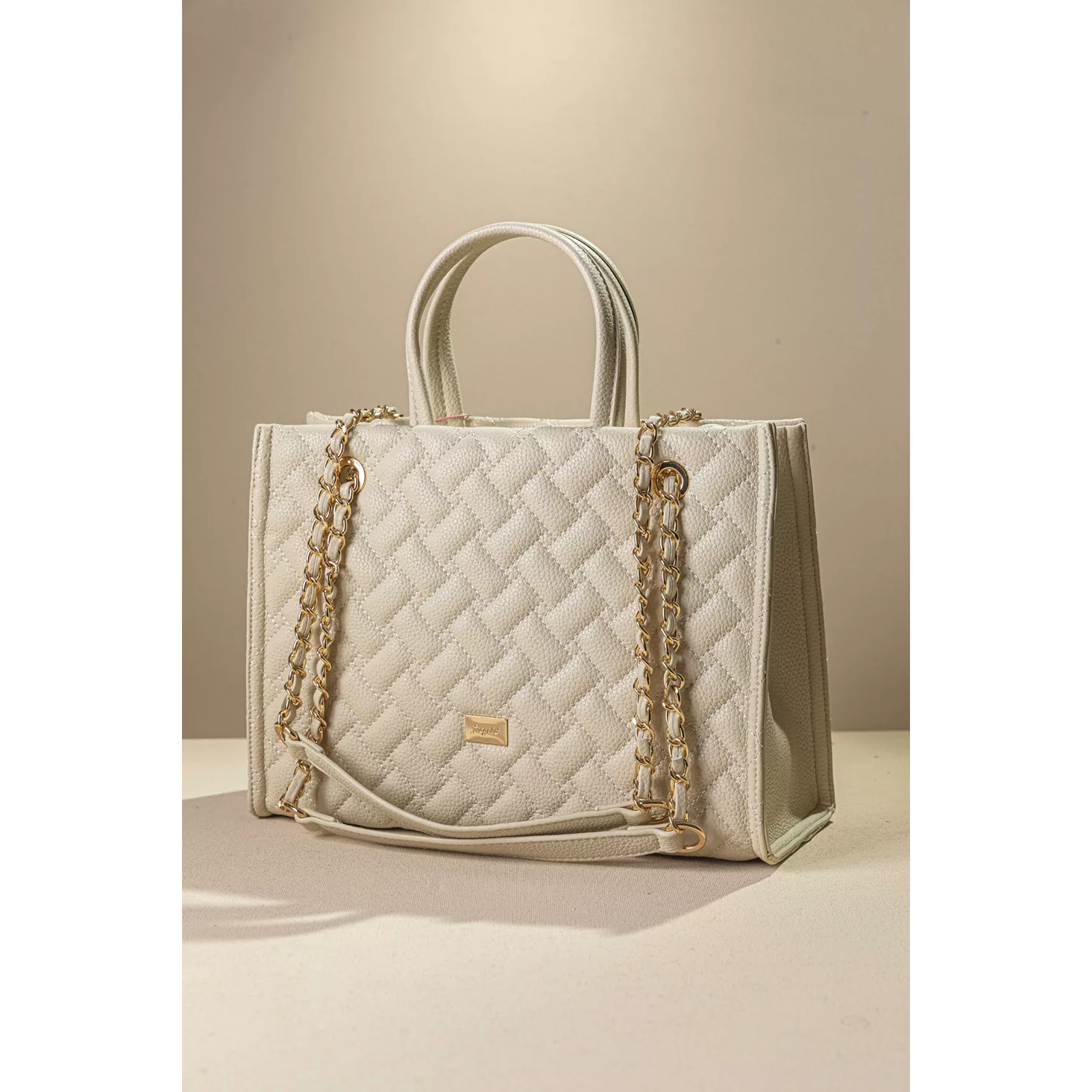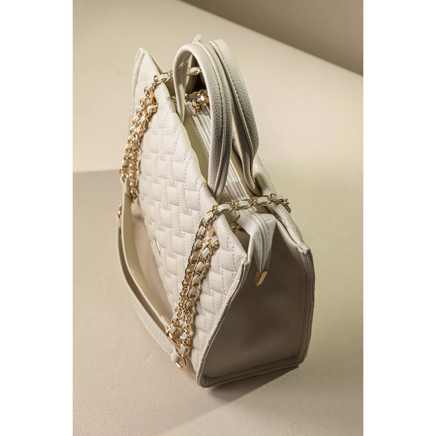 • Μια τσάντα που δείχνει σοβαρή αλλά έχει άποψη, καπιτονέ σχέδιο, μαλακή υφή και χρυσή αλυσίδα που κάνει "θόρυβο". • Κρατιέται στο χέρι ή φοριέται στον ώμο, ή γίνεται χιαστί. Έχει σταθερό σχήμα, φερμουάρ για ασφάλεια και χώρο για όλα τα καθημερινά σου must. Κλασική αλλά όχι βαρετή. Υλικό: Μαλακό συνθετικό δέρμα με puffy καπιτονέ γαζία.
