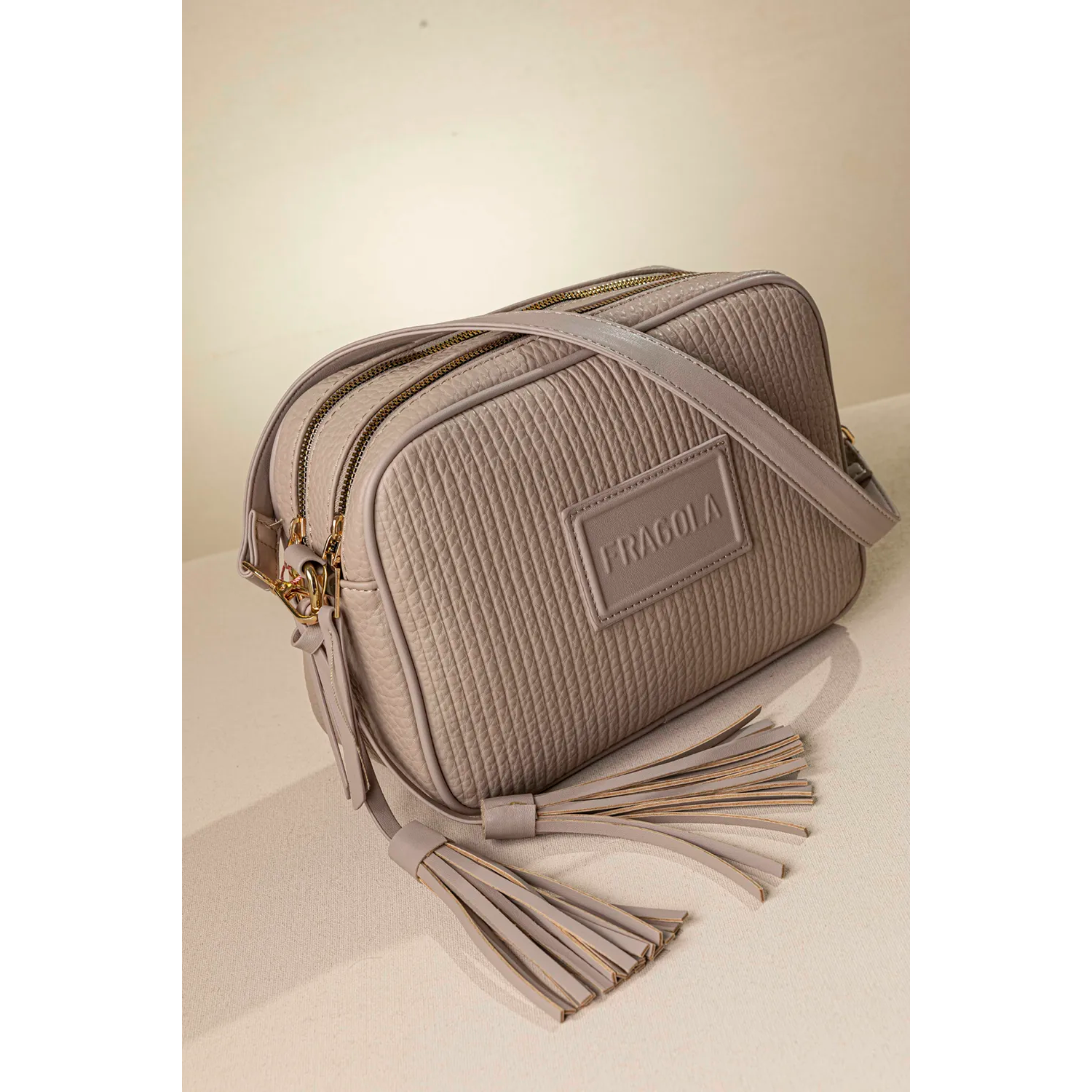 Χιαστί ή ώμου διθέσια τσάντα. Δύο απόλυτα διαχωρισμένοι κεντρικοί χώροι που κλείνουν με φερμουάρ.Διαθέτει ένα κοντό χέρι και ένα μακρύ "χέρα" για να μετατρέψετε την τσάντα σε χιαστί. Βοηθητικές μικρές θέσεις στο εσωτερικό της τσάντας και μια βοηθητική τσέπη με φερμουά στο εξωτερικό πίσω μέρος της. Υλικό: Συνθετικό δέρμα με μαλακή ανάγλυφη υφή.
