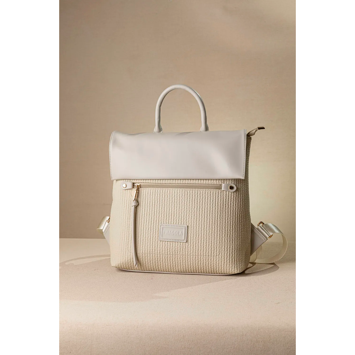 Μαλακό μεγάλο Backpack που κλείνει με καπάκι με δυο μαγνητικά buttons. Η τσάντα κλείνει με φερμουάρ για ασφάλεια, κάτω από το καπάκι .Ενιαίος χώρος με πολλές τσέπες. Μεγάλη χρηστική τσέπη με φερμουάρ στο μπροστινό μέρος και βοηθητική τσέπη με φερμουάρ στο πίσω μέρος. Τα χεράκια των ώμων είναι δερματίνη με ιμάντα για μεγαλύτερη άνεση. Υλικό: Συνθετικό δέρμα με μαλακή υφή