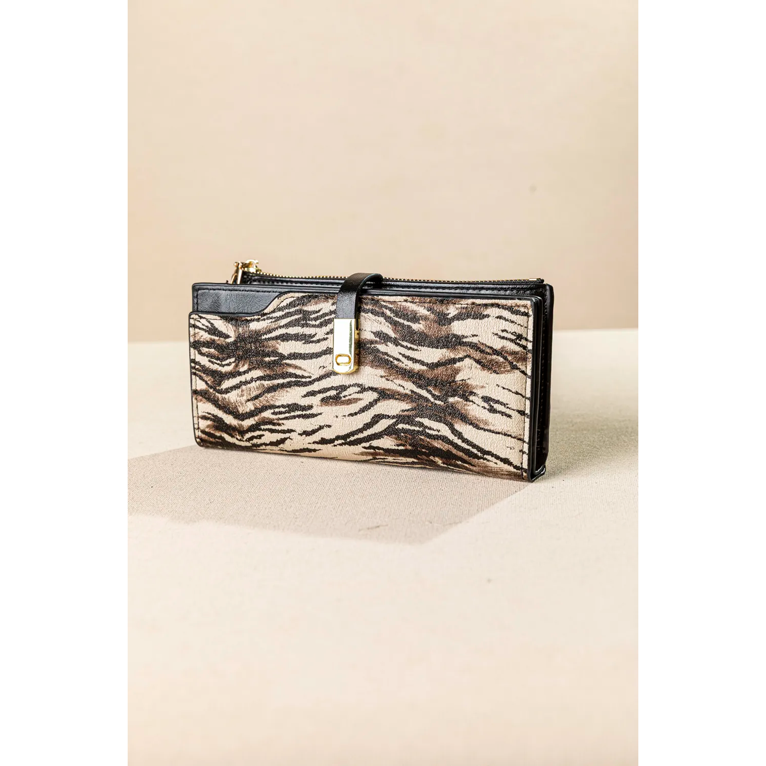 Μεγάλο πορτοφόλι που κλείνει με καπάκι με μαγνητικό μπουτόν. Διαθέτε πολλές θήκες για κάρτες και μεγάλη θήκη για χαρτονομίσματα. Εξωτερική θήκη με φερμουάρ για τα ψιλά με διαχωριστικό με έξτρα θήκη με φερμουάρ. Υλικό: Συνθετικό δέρμα με μαλακή υφή.