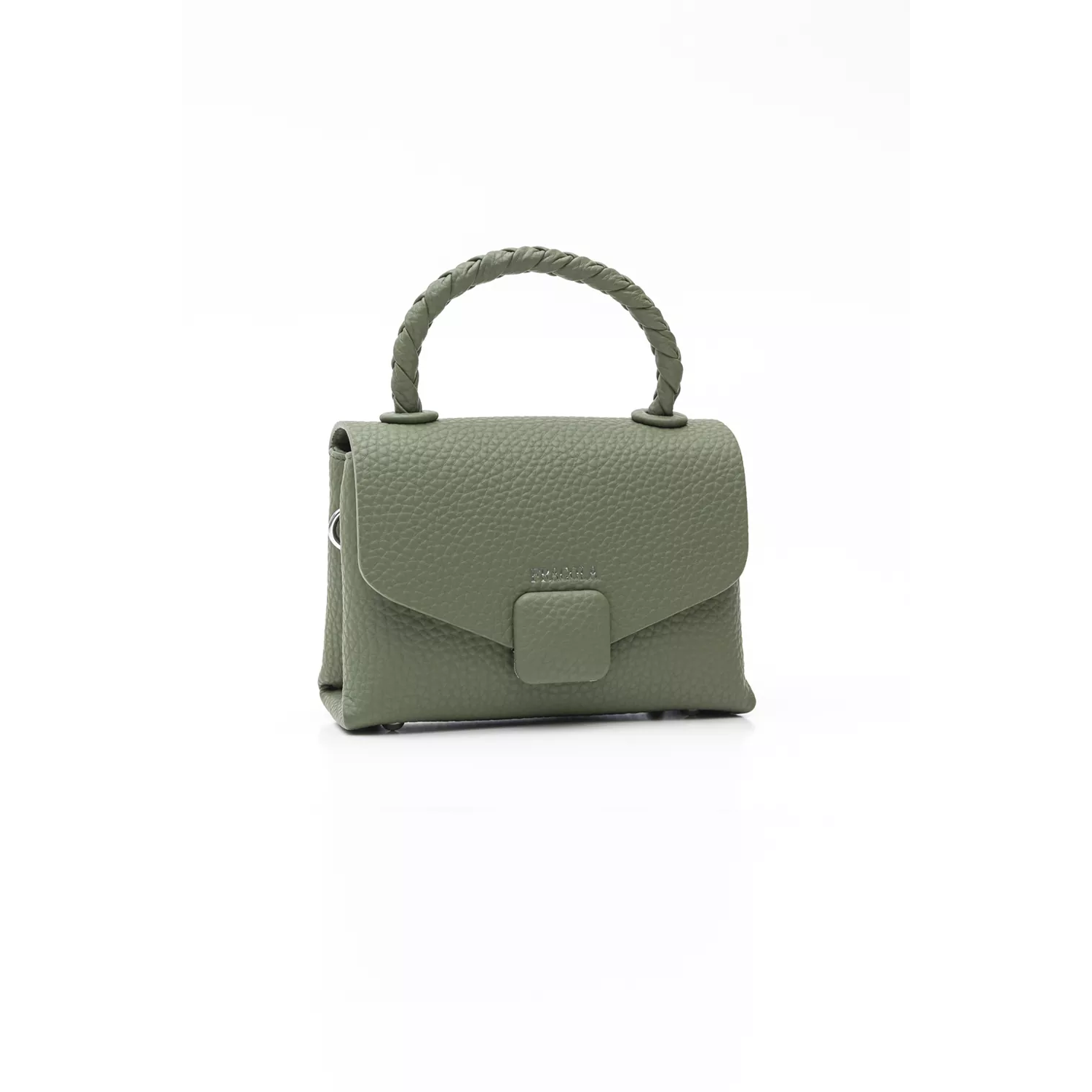 Μικρή τσάντα με καπάκι και κοντό πλεκτό χέρι. Δυο διαφορετικές τελείως διαχωρισμένες θέσεις που η καθεμία κλείνει με φερμουάρ για απόλυτη ασφάλεια. Το καπάκι κλείνει με μαγνητικό button με μεγάλη τετράγωνη φιγούρα ντυμένη με το υλικό της τσάντας. Διαθέτει και δεύτερο μακρύ αυξομειούμενο χέρι ωστε να τo μετατρέψετε σε χιαστί τσαντάκι.