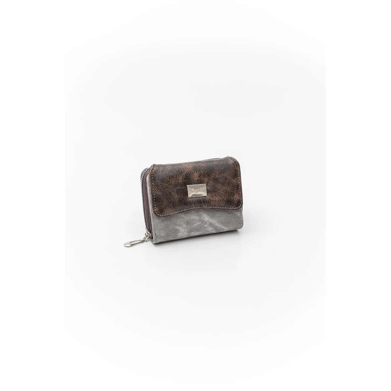 Μικρό πορτοφόλι με καπάκι με μαγνητικό button. Στο εσωτερικό υπάρχουν πολλές θήκες για κάρτες και έξτρα μεγάλες θέσεις για την ταυτότητα και τις σημειώσεις σας. Διαχωρισμένη θήκη με φερμουάρ και άλλη μια θέση που κλείνει με φερμουάρ. Υλικό: Vintage οικολογικό δέρμα συνδυασμένο με απομίμηση jean υφάσματος σε οικολογικό δέρμα ή ματ οικολογικό δέρμα.