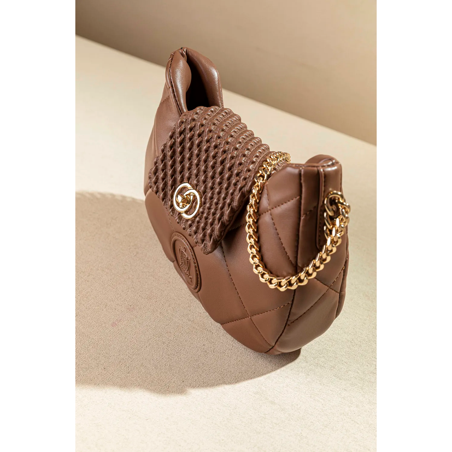 Μια υπέροχη τσάντα ώμου με τροχισμένη αλυσίδα και καπάκι που κλείνει με κλειδαριά. Η καλύτερη επιλογή σας για ένα ολοκληρωμένο elegant ντύσιμο! Στο εσωτερικό της θα βρείτε τα απαραίτητα μικρά τσεπάκια, ένα με φερμουάρ και ένα χωρίς για αποθήκευση μικροαντικειμένων. Διαθέτει μια έξτρα μεγάλη τροχισμένη αλυσίδα η οποία μετατρέπει την τσάντα σε χιαστί. Υλικό: Μαλακό συνθετικό puffer δέρμα με γαζιά.
