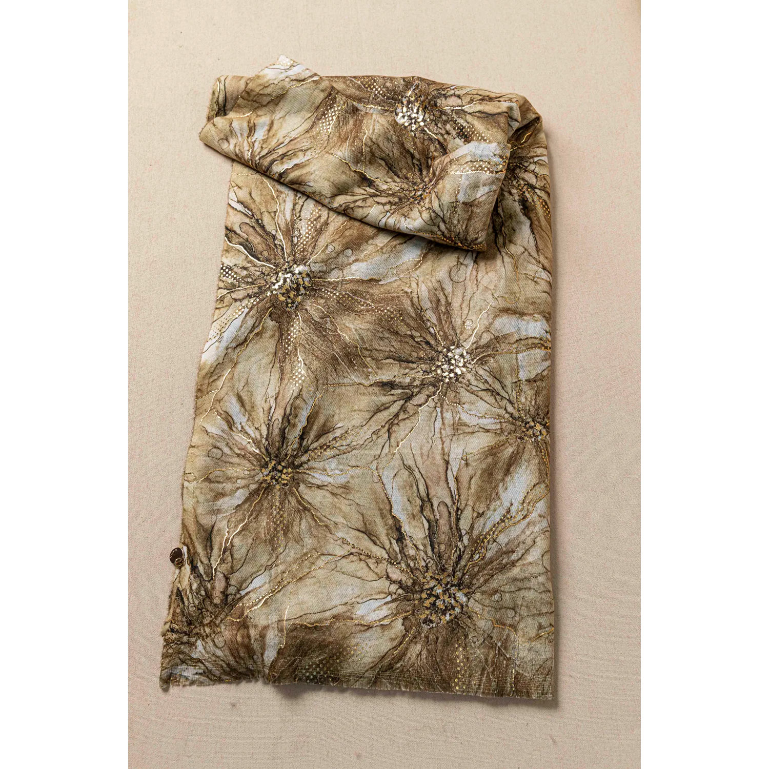 Πασμίνα με συμπαγή φλατ πλέξη. Αίσθηση μαλακού υφάσματος που σε αγκαλιάζει. Το ντεσέν του υφάσματος την κάνει κατάλληλη και για απογευματινές εμφανίσεις. Μπορεί να υποστηρίξει σχεδόν όλα τα outfit.