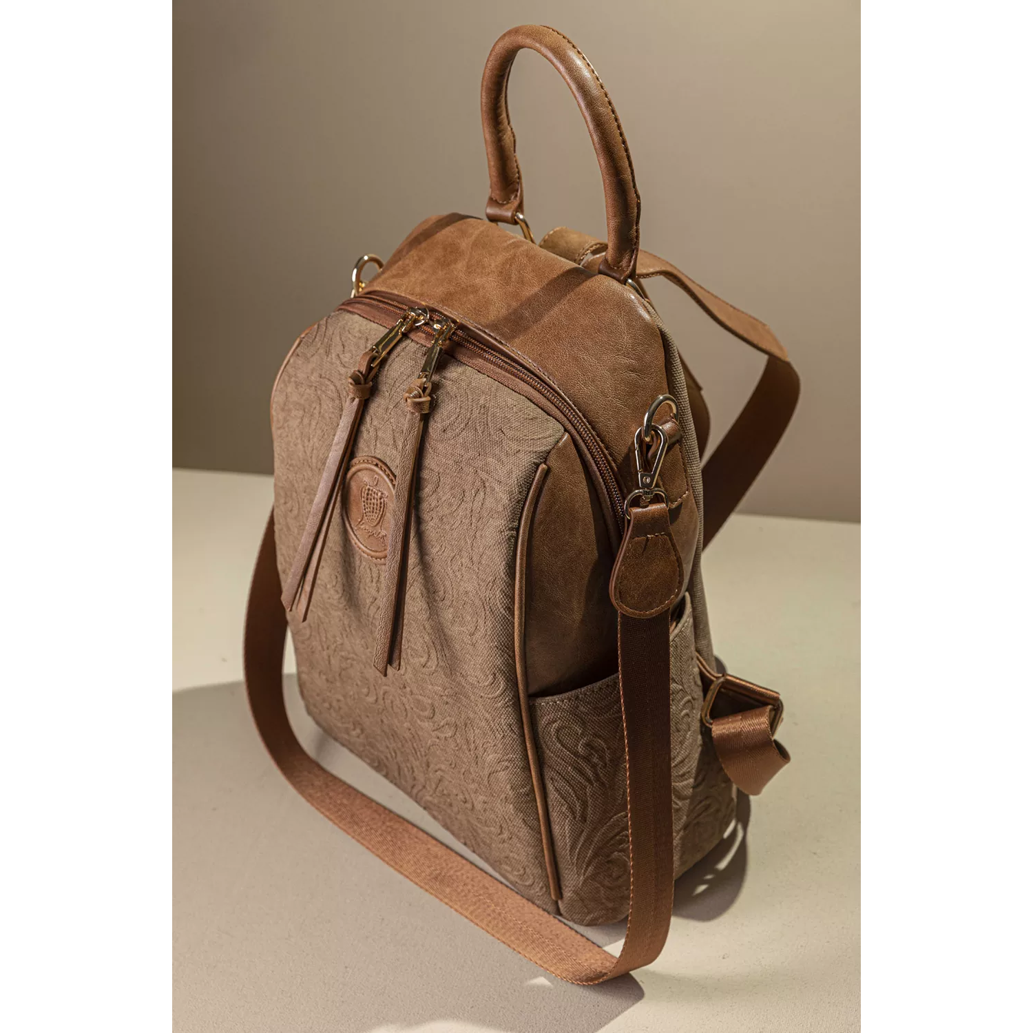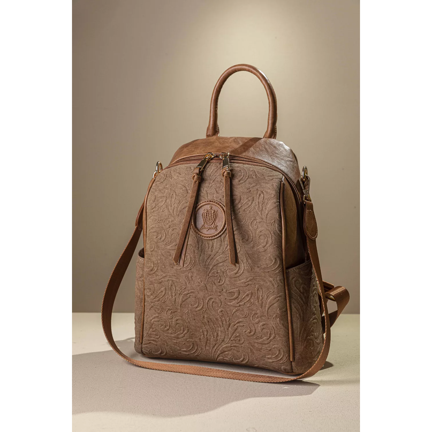 • Το απόλυτο backpack από soft υλικό, πολυμορφικό και In fashion. • Μπορείτε να το φορέστε σαν τσάντα πλάτης ή ώμου ανάλογα με την διάθεση! • Διαθέτει μια κεντρική μεγάλη θέση με τα κλασσικά μικρά τσεπάκια μέσα και ασφαλές κλείσιμο με φερμουάρ. Δύο βοηθητικές τσέπες δεξιά και αριστερά. • Εξωτερική κάθετη τσέπη στο πίσω μέρος της που κλείνει με φερμουάρ. Τα χεράκια των ώμων είναι δερματίνη με ιμάντα για μεγαλύτερη άνεση και καλύτερα εφαρμογή. Διαθέτει αφαιρούμενο ιμάντα ώμου. Υλικό: Συνθετικό δέρμα με υφή canva και εντυπωσιακό ανάγλυφο print.