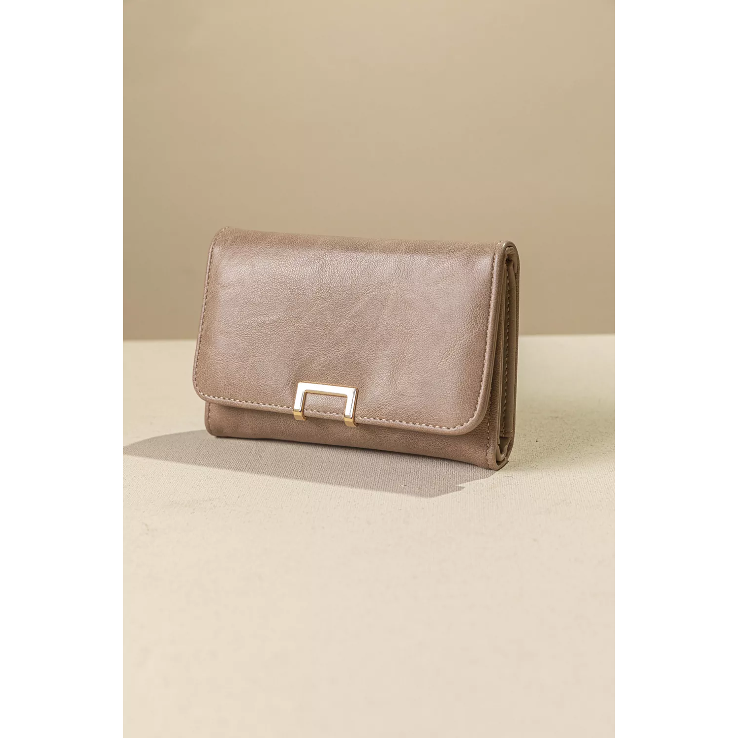 • Κομψό γυναικείο πορτοφόλι μεσαίου μεγέθους ιδανικό για καθημερινή χρήση. • Ο minimal σχεδιασμός του με το χρυσό μεταλλικό κούμπωμα χαρίζει μια διακριτική πολυτέλεια. Το εσωτερικό του είναι πρακτικά οργανωμένο με πολλαπλές θέσεις για κάρτες, διάφανη θήκη για ταυτότητα ή δίπλωμα, καθώς και ξεχωριστό χώρο για χαρτονομίσματα. • Διαθέτει επίσης θήκη για κέρματα με φερμουάρ, προσφέροντας εύκολη πρόσβαση. • Compact αλλά ευρύχωρο, χωράει όλα τα απαραίτητα χωρίς να πιάνει χώρο στη τσάντα σας. Υλικό: Συνθετικό δέρμα με υφή canva.