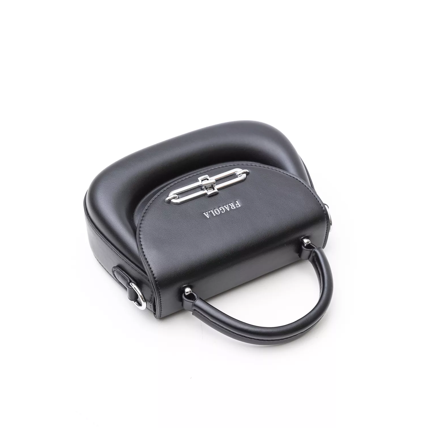 Σταθερό μικρό τσαντάκι με σκληρό, κοντό χέρι. Το ιδιαίτερο καμπρέ σχήμα της την κάνει υπέροχη και κατάλληλη για τις βραδινές σας εμφανίσεις και όχι μόνο. Στο εσωτερικό της θα βρείτε όλα τα κλασικά τσεπάκια με φερμουάρ και χωρίς. Διαθέτει αυξομειούμενο χέρι για να την μετατρέψετε σε χιαστί. Υλικό: Ματ λείο οικολογικό δέρμα.