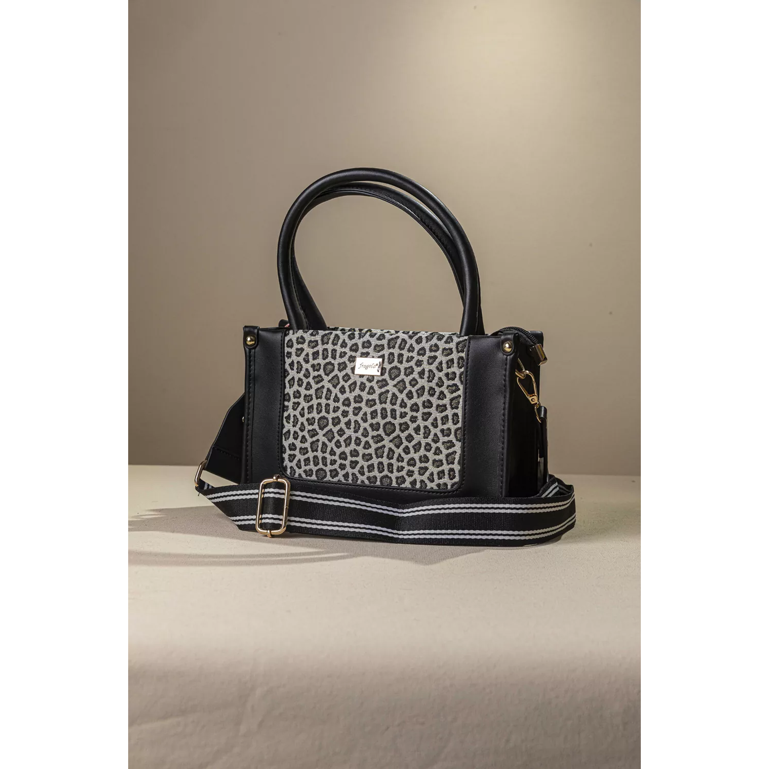 • Υφασμάτινη τσάντα με εντυπωσιακό μοτίβο και μοντέρνες λεπτομέρειες που ξεχωρίζουν. Διαθέτει διπλά στρογγυλά χέρια για κράτημα στο χέρι, καθώς και αποσπώμενο ρυθμιζόμενο ιμάντα για χιαστί εφαρμογή, προσφέροντας άνεση και ευελιξία σε κάθε περίσταση. • Ο συνδυασμός υφάσματος και συνθετικού δέρματος χαρίζει σταθερότητα, αντοχή και εκλεπτυσμένο χαρακτήρα. • Κλείνει με φερμουάρ διατηρώντας τα προσωπικά αντικείμενα ασφαλή. • Το δομημένο της σχήμα την καθιστά ιδανική για όλες τις ώρες από το γραφείο έως τις απογευματινές εξόδους. Υλικό: Διατίθεται σε εντυπωσιακά animal prints και δημοφιλή γεωμετρικά σχήματα.