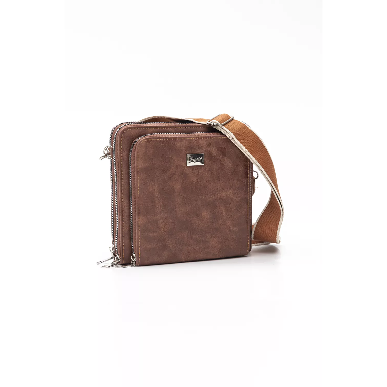 Χιαστί τριθέσιο τσαντάκι σταθερό για όλες τις ώρες τη ημέρας. Πολλές βοηθητικές θήκες στο εσωτερικό του. Με ιδιαίτερο αυξομειούμενο μαλακό ιμάντα. Υλικό: Συνθετικό δέρμα σταμπωμένο με πυρογραφία με ανάγλυφο αποτέλεσμα.