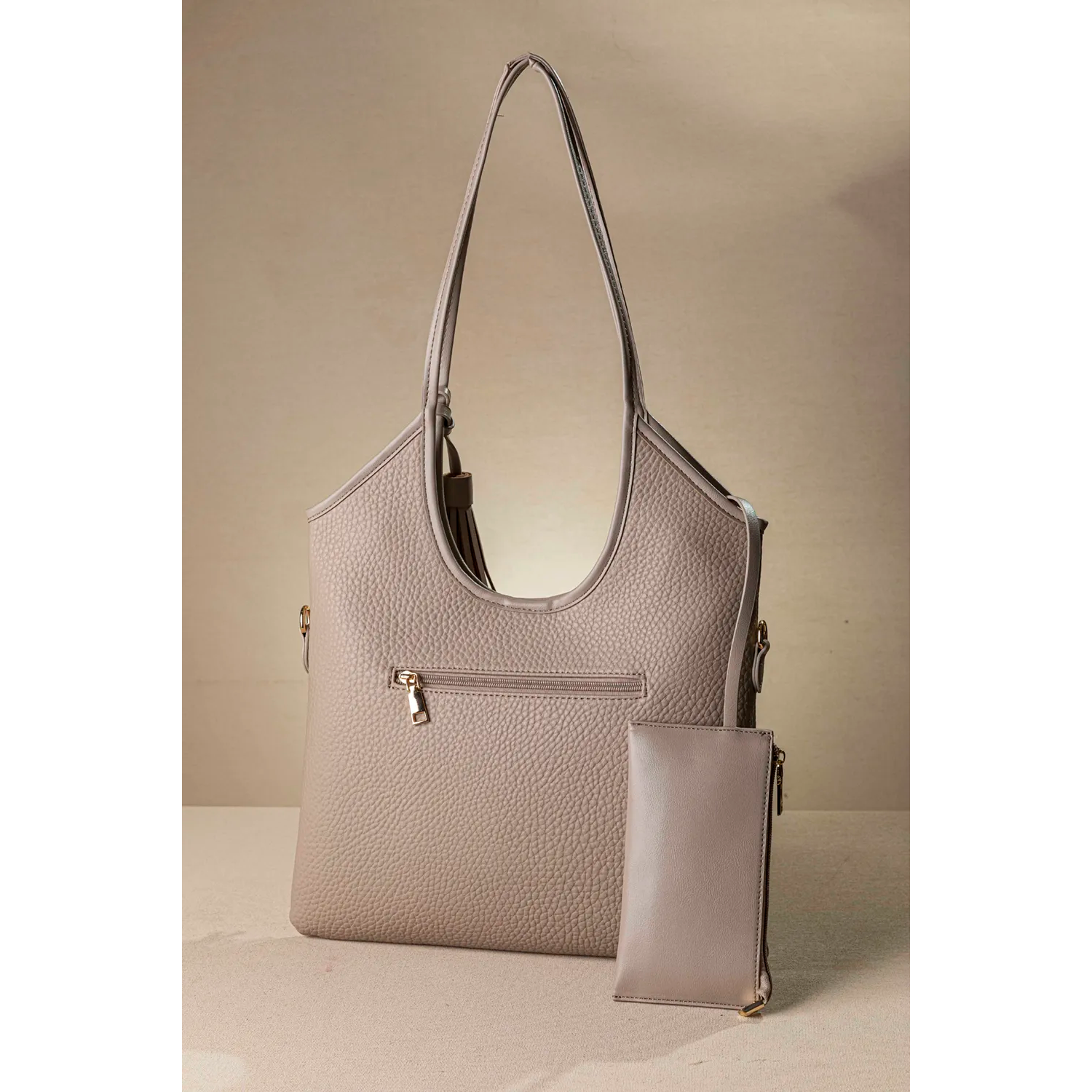 Ελαφριά τσάντα ώμου που κλείνει με μαγνητικό Button και έχει ένα αφαιρούμενο έχτρα μικρό τσαντάκι στο εσωτερικό της για αποθήκευση κλειδιών ή μικροαντικειμένων. Διαθέτει έξτρα αυξομειούμενο "χεράκι" για να τη φορέσετε χιαστί. Φορώντας τη χιαστί διπλώνει το μπροστινό της μέρος και ουσιαστικά μετατρέπεται σε ένα φάκελο. Διπλωμένη μπορείτε και απλά να την κρατάτε στο χέρι σας, σαν φάκελο, για μια απογευματινή βόλτα. Στο πίσω εξωτερικό μέρος της τσάντας υπάρχει έξτρα θήκη με φερμουάρ. Υλικό: Συνθετικό δέρμα μαλακής ανάγλυφης υφής.