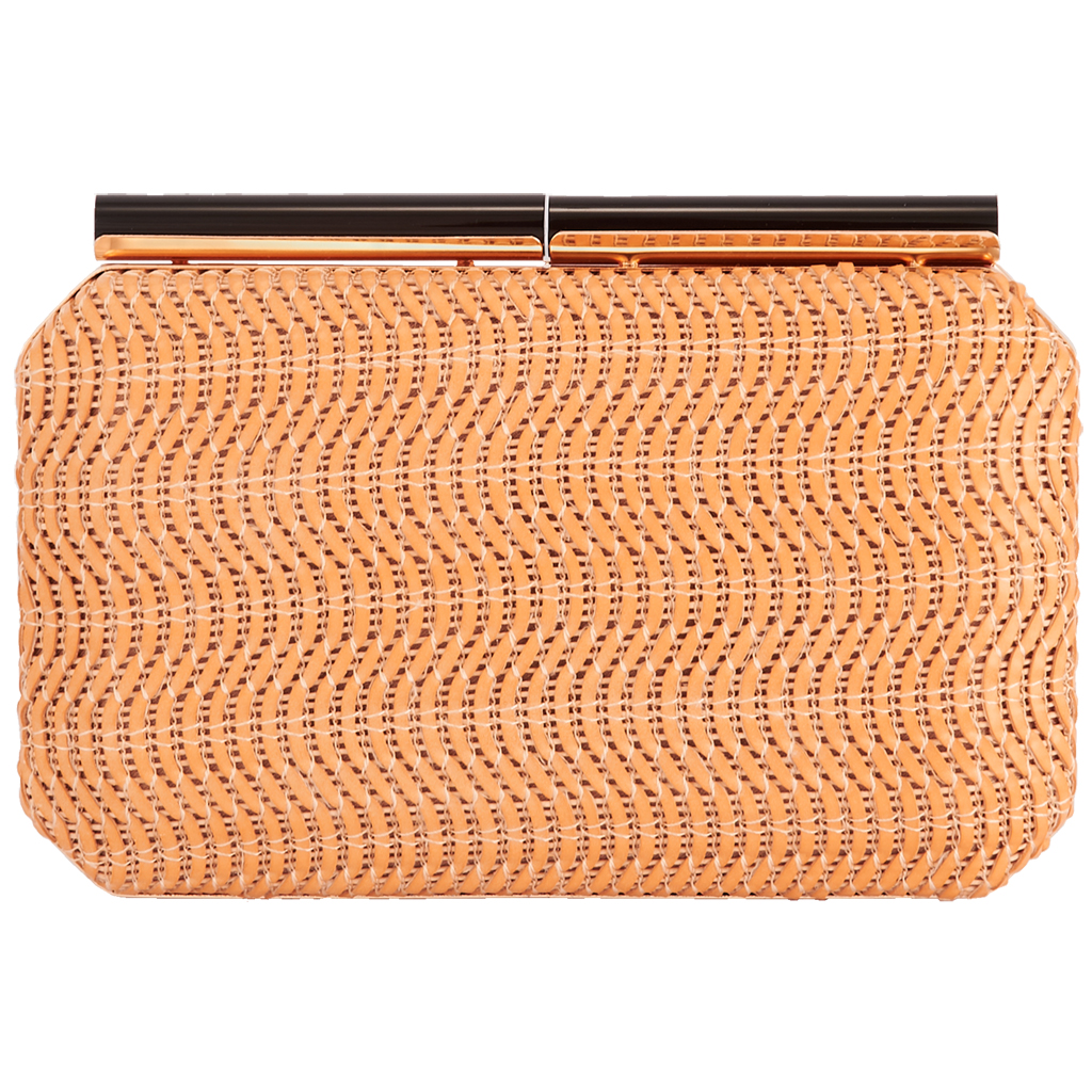 Τσαντάκι clutch από δερματίνη με πλεκτό σxέδιο και ιδιαίτερο κλείσιμο 20x15x4cm σε xρώμα μπέζ