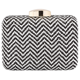 Τσαντάκι clutch από ψάθινη πλέξη 17x12x5cm σε xρώμα μαύρο/λευκό