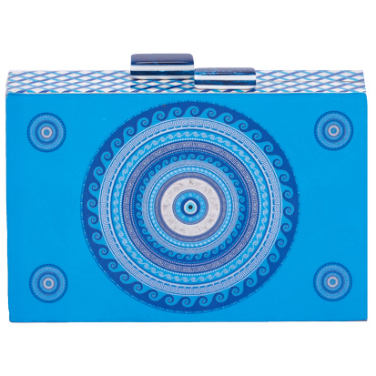 Τσαντάκι clutch χειροποίητο από ξύλο και πλέξιγκλας με μάτι (18cmΧ11,5cmX4.5cm) σε χρώμα γαλάζιο