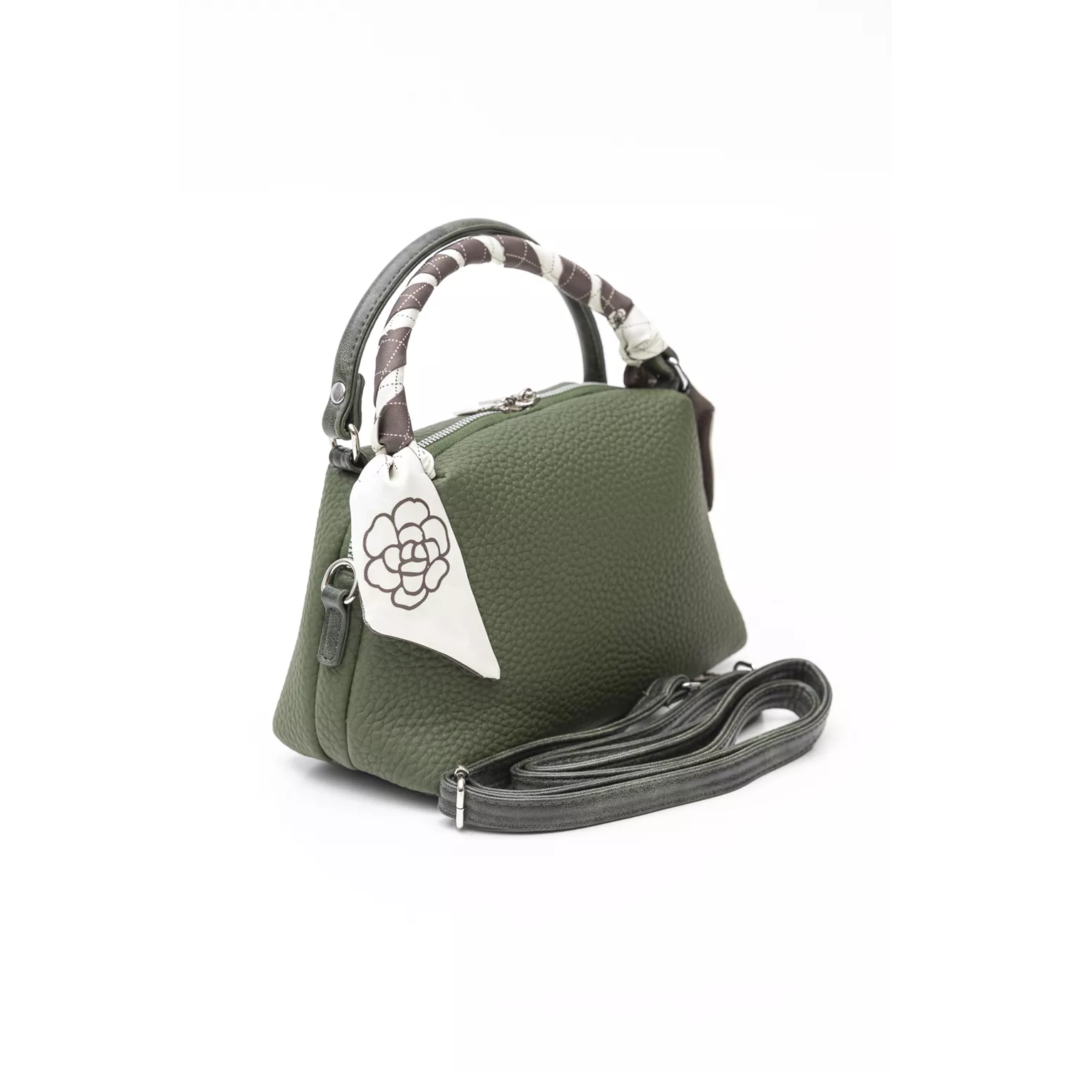 Soft τσάντα μεσαίου μεγέθους με σταθερό πάτο και 2 χεράκια για κράτημα. Διαθέτει έξτρα αυξομειούμενο χέρι για να την φοράτε χιαστί όλη μέρα! Το μαντήλι μπορείτε να το διακοσμήσετε όπως εσείς επιιθυμείτε στην τσάντα! Στο εσωτερικό της θα βρείτε το κλασικό πίσω τσεπάκι με φερμουάρ και όλα τα κλασικα τσεπάκια για τα μικροαντικείμενα σας. Υλικό: Ανάγλυφο οικολογικό δέρμα