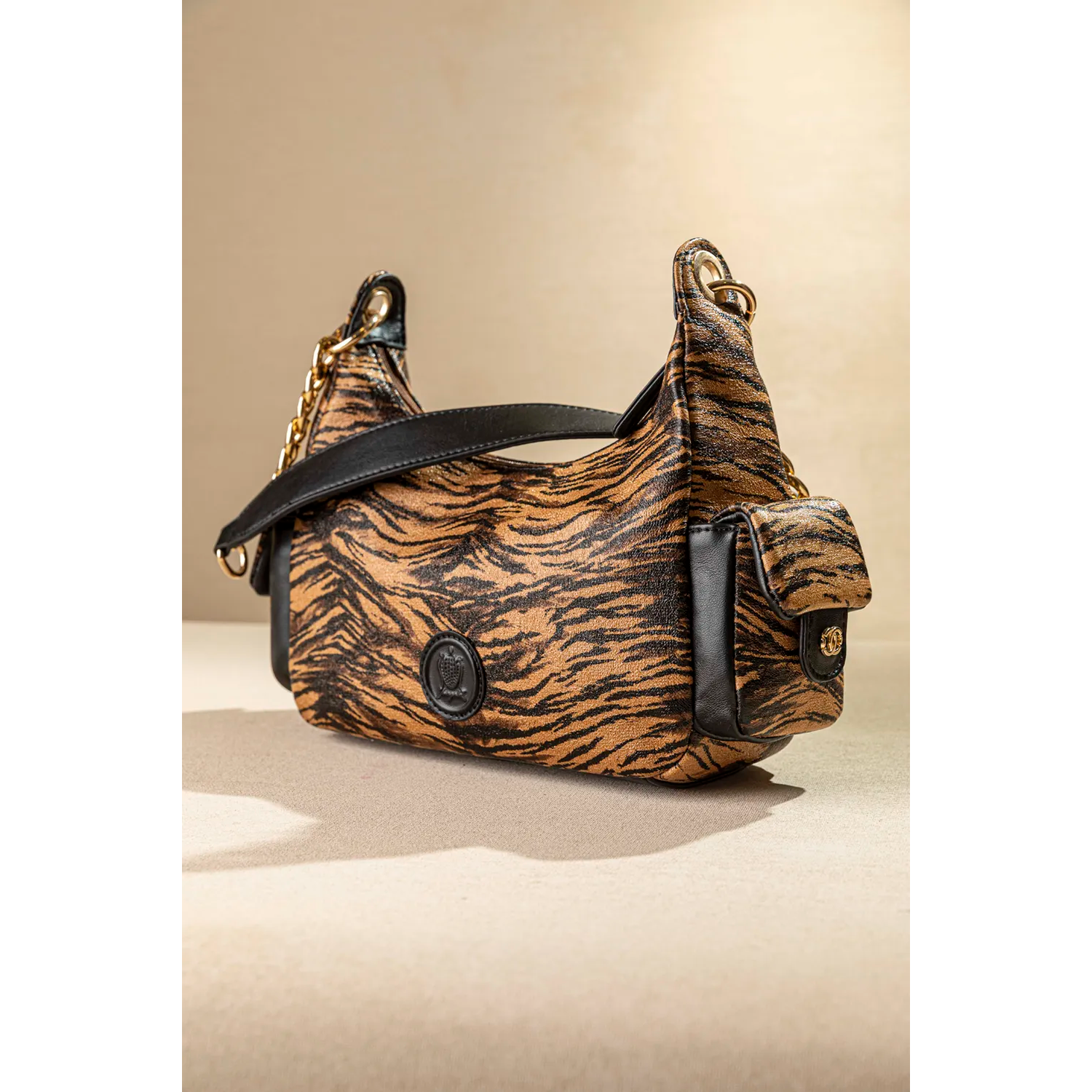 Μαλακή τσάντα ώμου για όλη τη μέρα σας αλλά και τις βόλτες σας! Εξωτερικά έχει τέσσερις τσέπες που κλείνουν με καπάκι με μαγνητικό Button. Διαθέτει κοντό "χεράκι" με χοντρή τροχισμένη αλυσίδα και δερματίνη, όπως επίσης διαθέτει έξτρα αυξομειούμενο "χεράκι" για να μετατρέψετε την τσάντα σε χιαστί. Υλικό: Συνθετικό δέρμα με υφή και print φιδιού ή με tiger print.