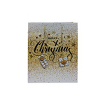 Σακούλα δώρου με χριστουγεννιάτικες παραστάσεις με διαστάσεις 14x18x7cm σε λευκό με χρυσό χρώμα σε διάφορα σχέδια