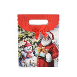 Χριστουγεννιάτικη σακούλα δώρου με Άγιο Βασίλη & Χιονάνθρωπο σε κόκκινο χρώμα 12,5x16,5x6cm