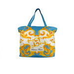Τσάντα θαλάσσης με vintage σχέδια σε γαλάζιο χρώμα 54x18x40cm