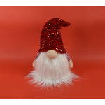 Χριστουγεννιάτικος διακοσμητικός νάνος με κόκκινες παγιέτες στον σκούφο και φως 20x16x25cm