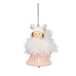 Χριστουγεννιάτικο στολίδι καμπανάκι αγγελάκι με πούπουλα σε ροζ χρώμα 10x6,5x6,5cm