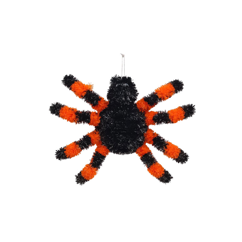 Διακοσμητική αράχνη ταραντούλα Halloween σε μαύρο χρώμα με ριγέ πορτοκαλί πόδια