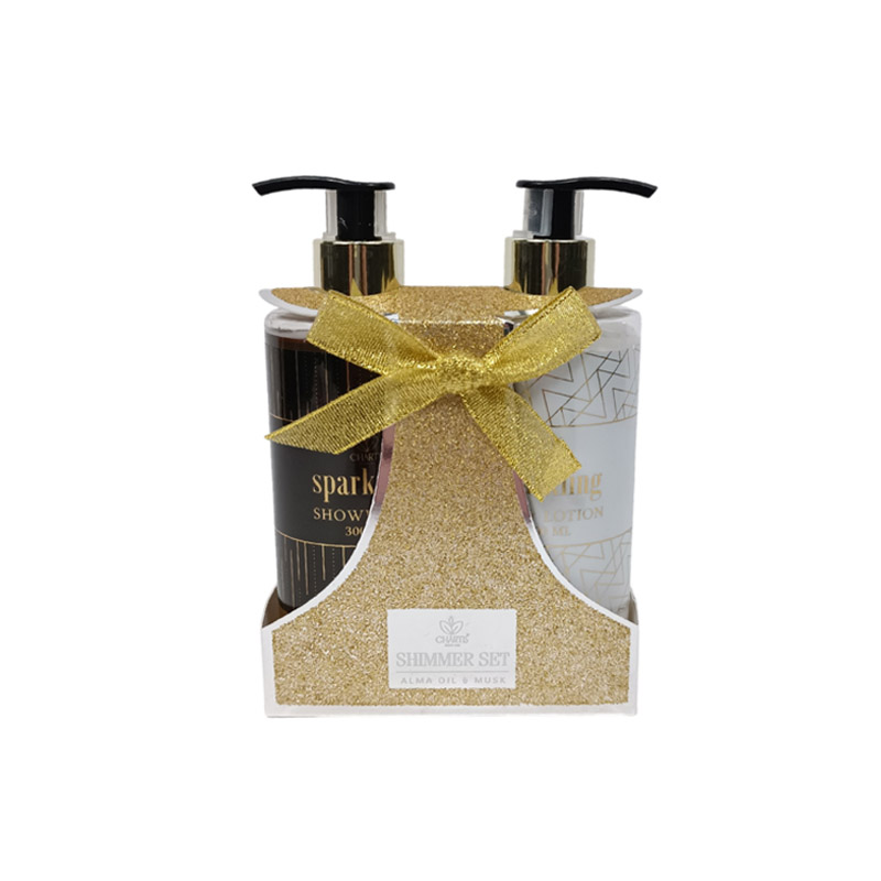 Γιορτινό σετ δώρου με 2 είδη μπάνιου με γκλίτερ σε χρυσό χρώμα