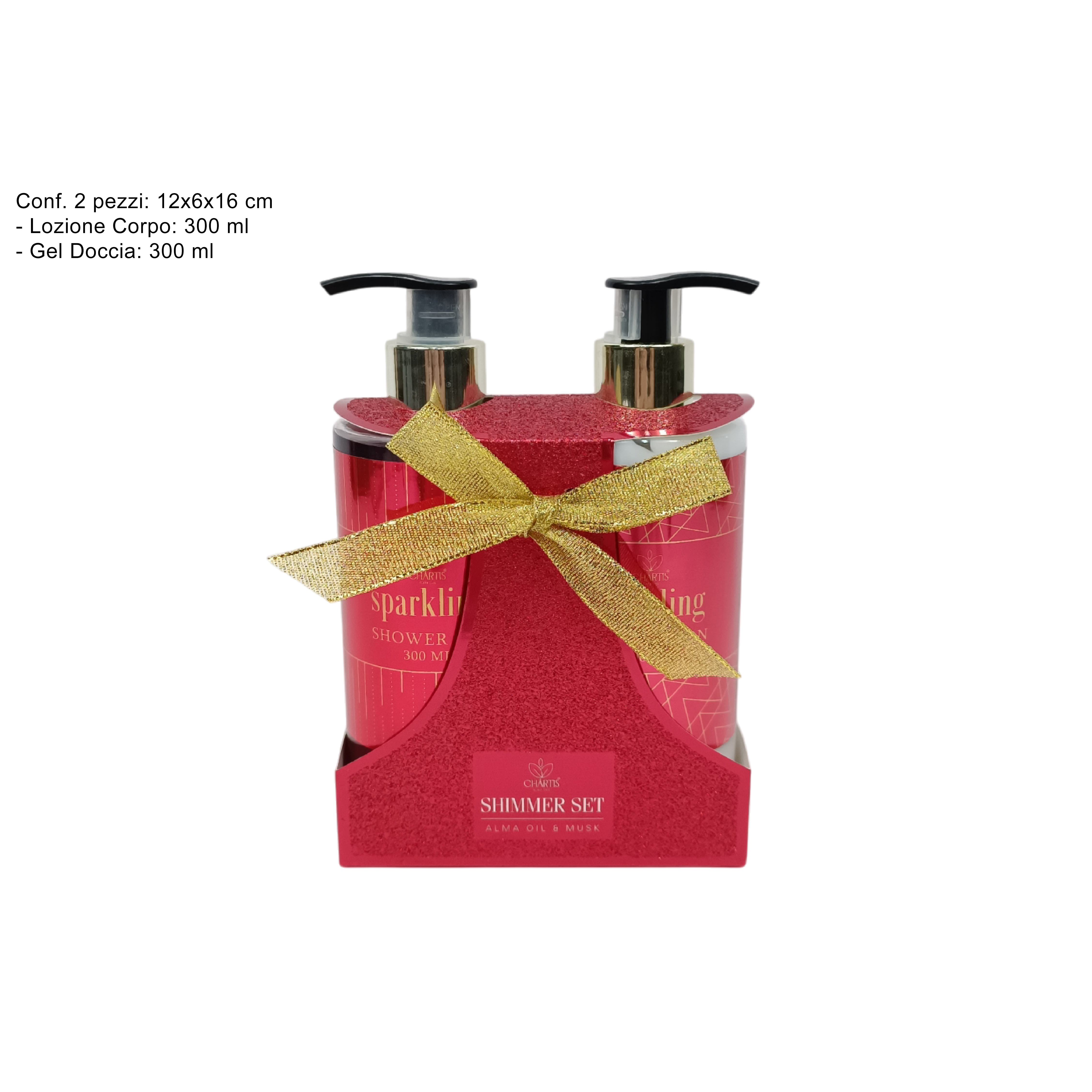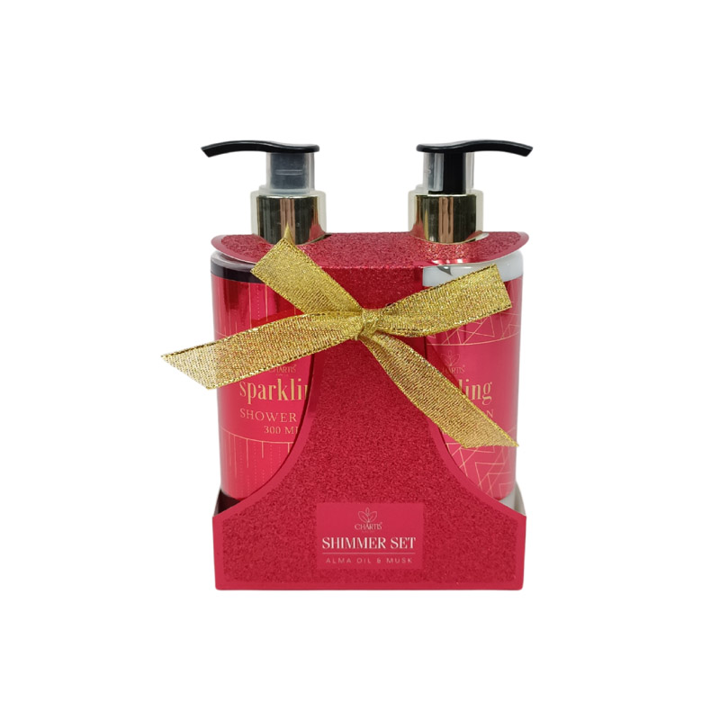 Γιορτινό σετ δώρου με 2 είδη μπάνιου με γκλίτερ σε κόκκινο χρώμα