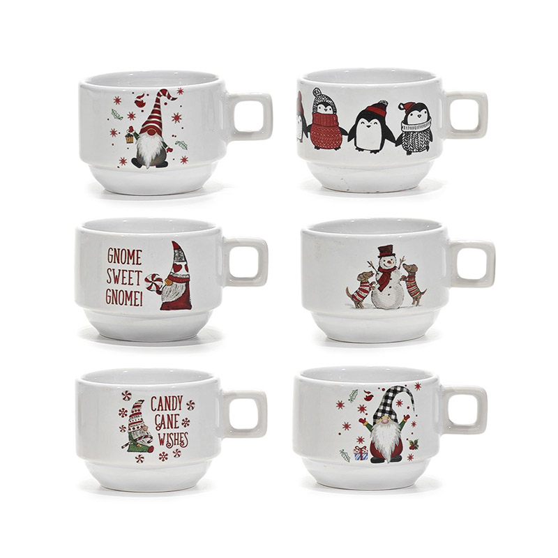Χριστουγεννιάτικα φλυτζάνια καφέ σετ 6τμχ με μεταλλική στήλη σε λευκό χρώμα με σχέδια 120ml