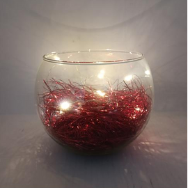Χριστουγεννιάτικα φωτάκια ψείρες 10 LED λευκό θερμό με κόκκινη διακοσμητική ταινία 16x1.5x21cm
