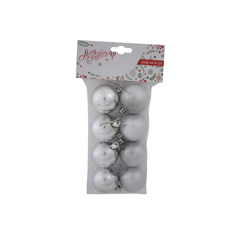 Χριστουγεννιάτικες μπάλες σετ 8 τμχ με διάμετρο 5cm σε γυαλιστερό ασημί χρώμα