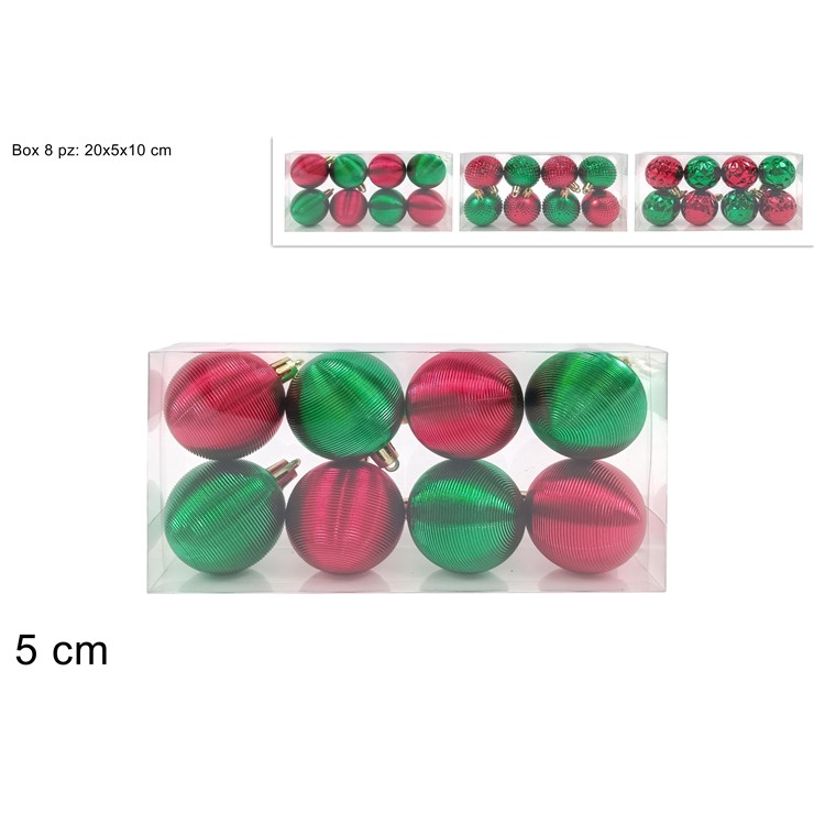 Χριστουγεννιάτικες μπάλες στολίδια σε πράσινο/κόκκινο γυαλιστερό χρώμα σετ 8τμχ 5cm
