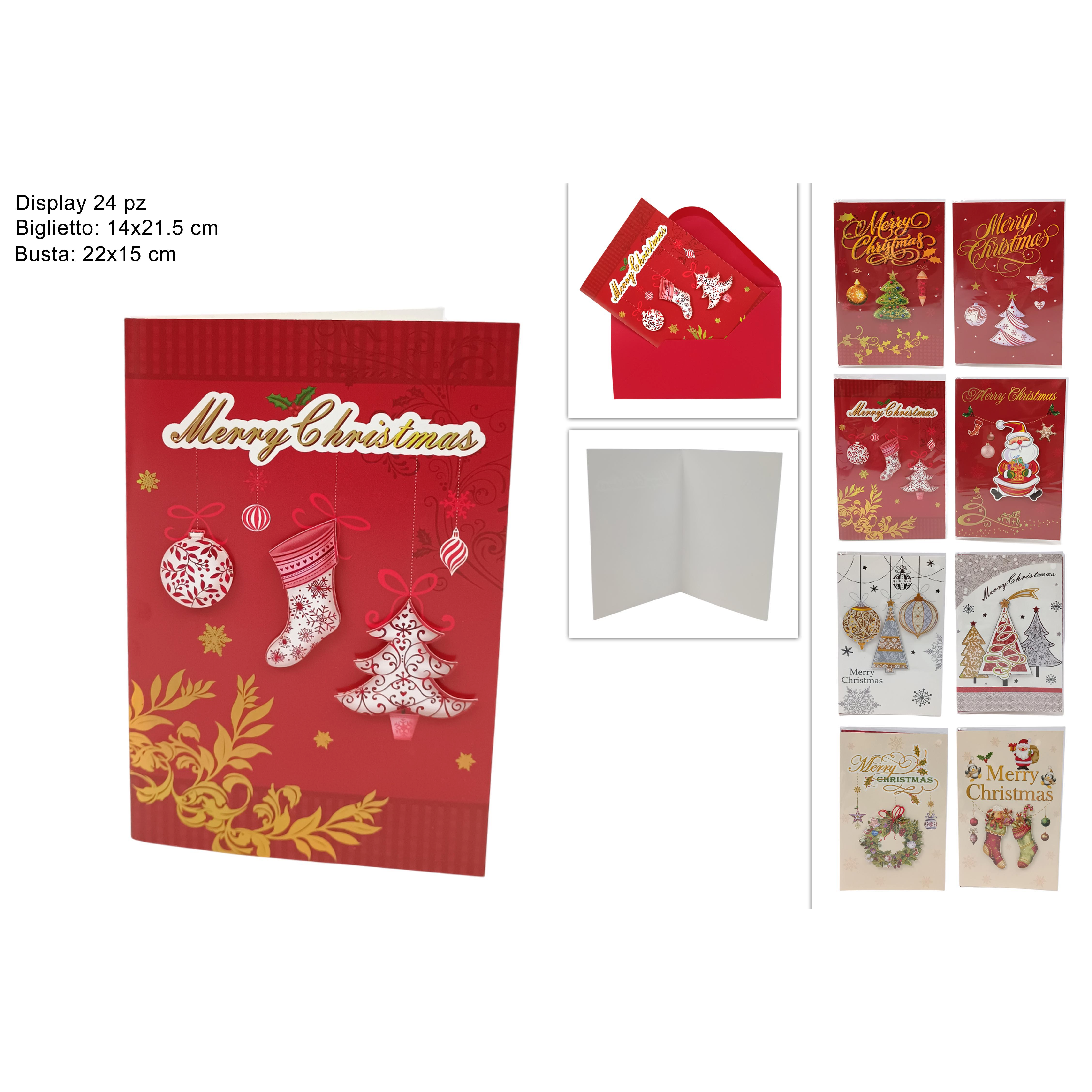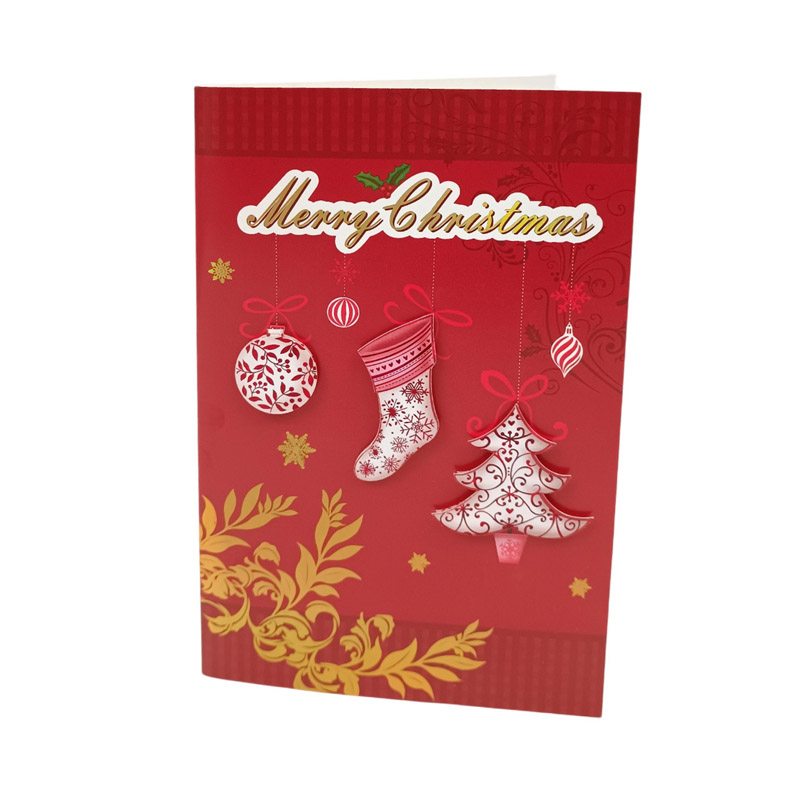 Χριστουγεννιάτικη ευχετήρια κάρτα με 3D σχέδια σε κόκκινο χρώμα 22x15cm