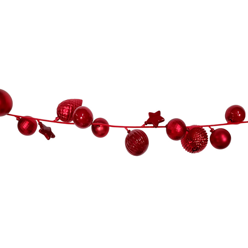 Χριστουγεννιάτικη γιρλάντα με κουκουνάρια, μπάλες και αστέρια σε κόκκινο χρώμα 170cm