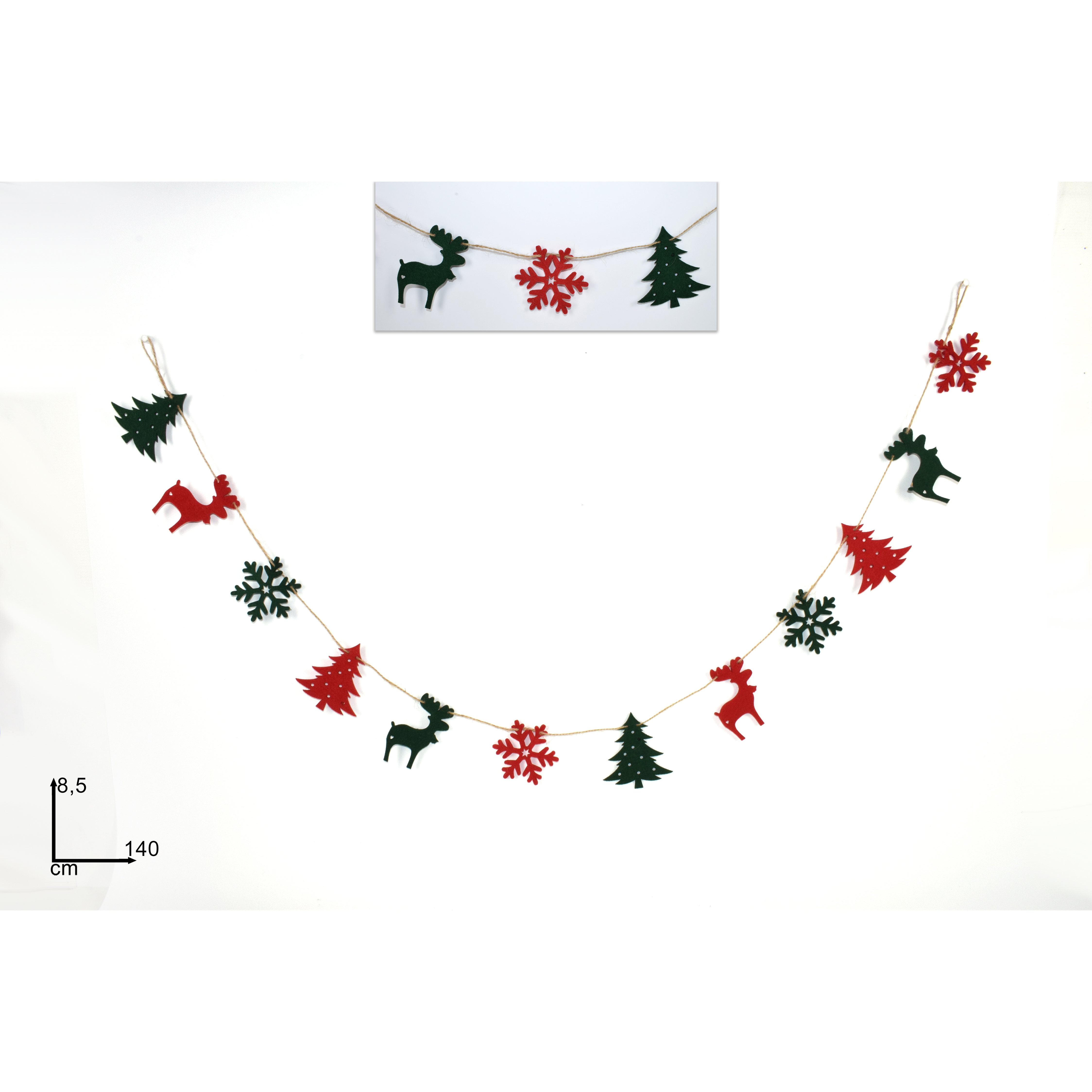 Χριστουγεννιάτικη γιρλάντα τσόχινη με ταράνδους και δεντράκια 8.5x140cm