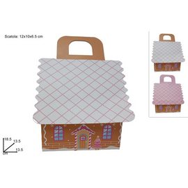 Χριστουγεννιάτικη σακούλα δώρου σε σχήμα σπίτι από τζίντζερμπρεντ με λευκή σκεπή 18.5x13.5x13.5cm