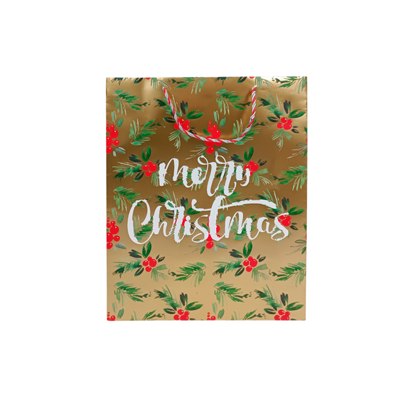 Χριστουγεννιάτικη σακούλα σε χρυσό χρώμα με σχέδια 42x11x33cm
