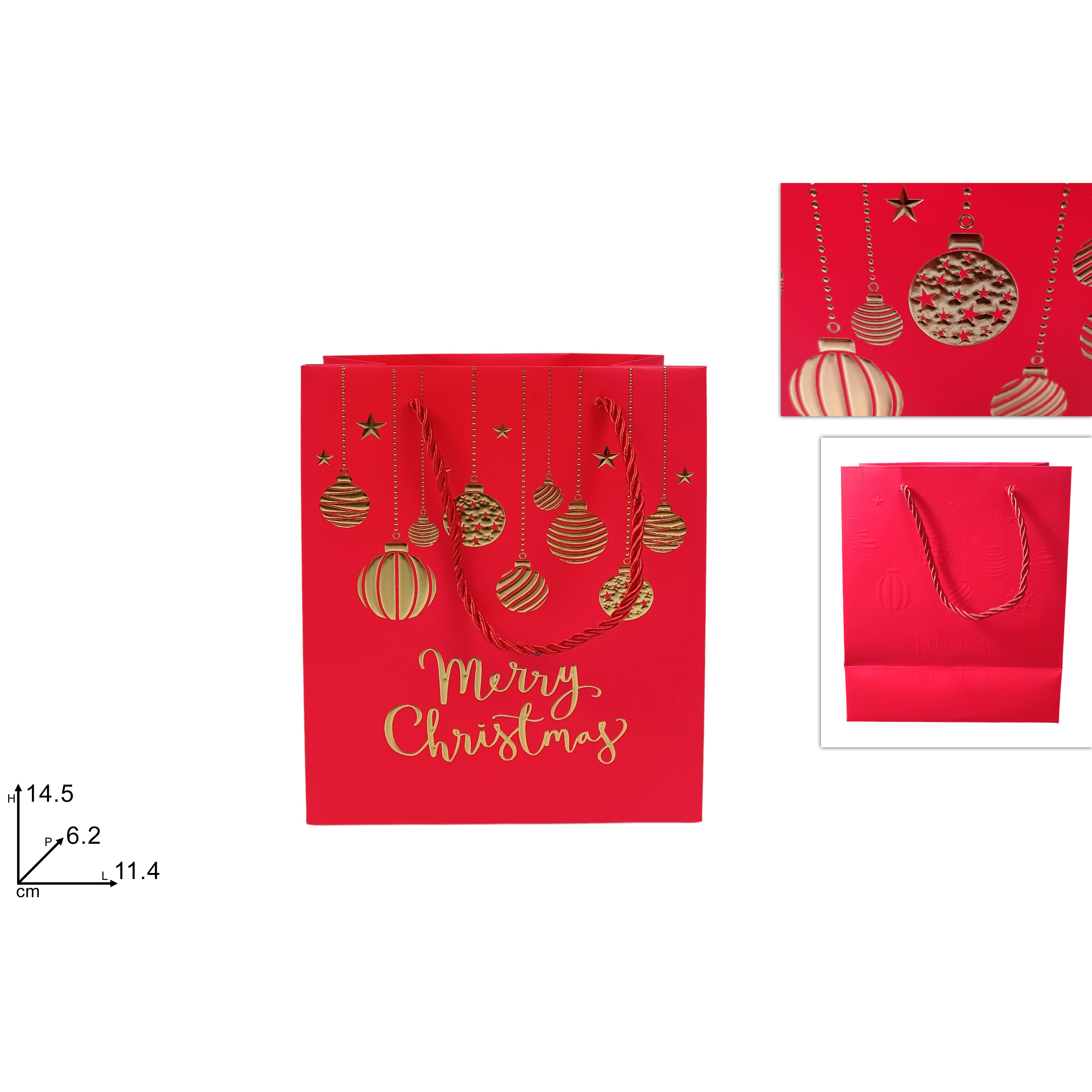 Χριστουγεννιάτικη τσάντα δώρου με διαστάσεις 11,4x14,5x6,2cm σε κόκκινο και χρυσό χρώμα