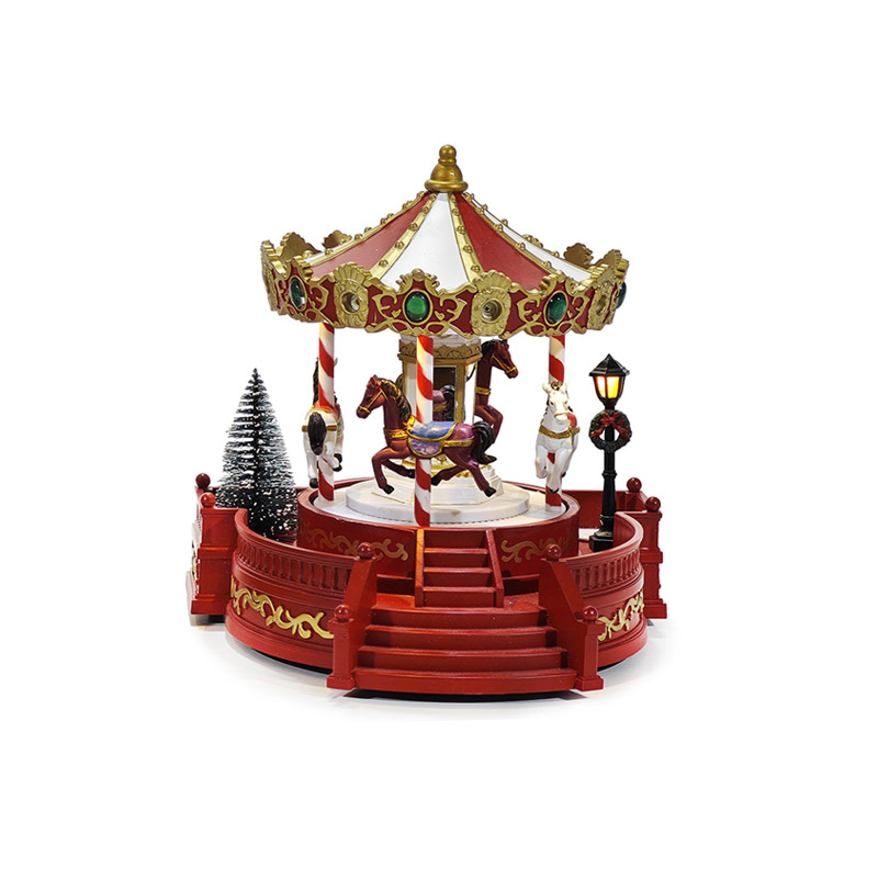 Χριστουγεννιάτικο διακοσμητικό ξύλινο καρουζέλ με μουσική, κίνηση και φως 21.5x21x23cm