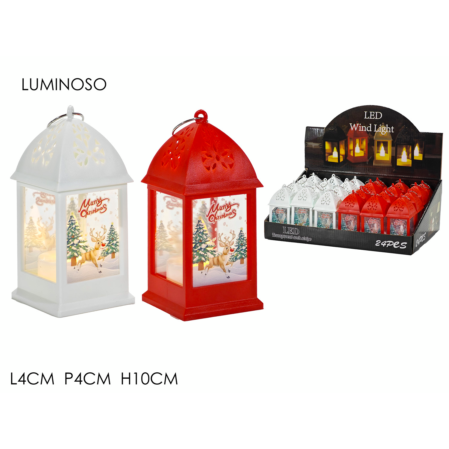 Χριστουγεννιάτικο φαναράκι με ηλεκτρικό ρεσώ σε 2 χρώματα 4x4x10cm