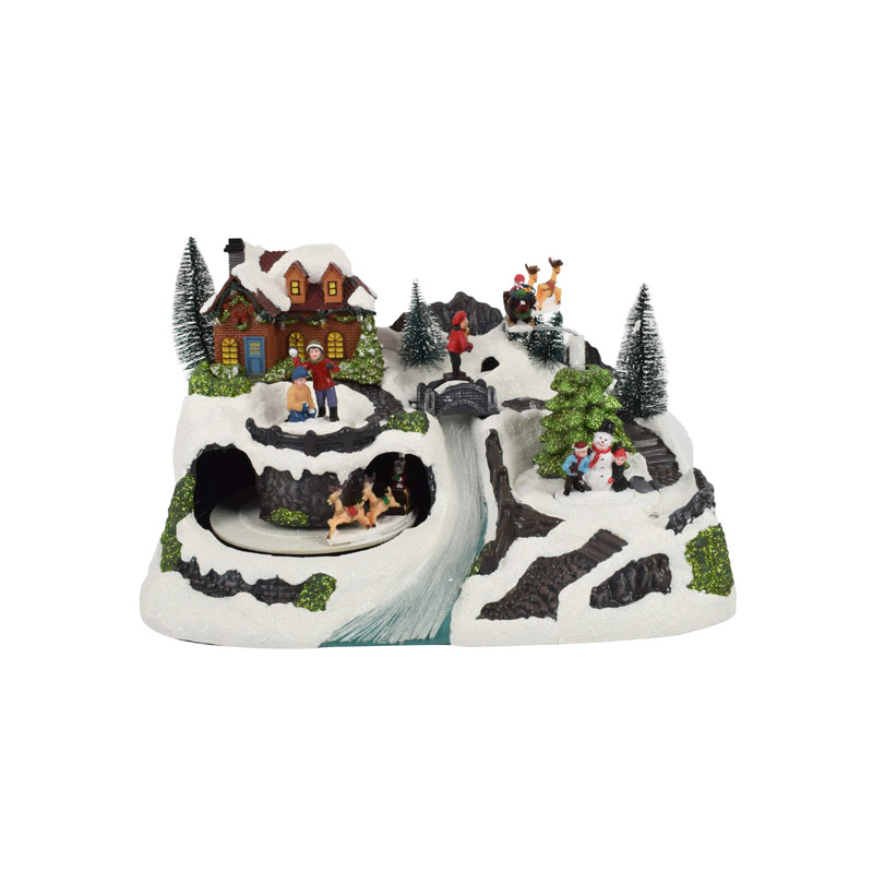 Χριστουγεννιάτικο χωριό με έλκηθρο με κίνηση, φως και μουσική σε 2 σχέδια