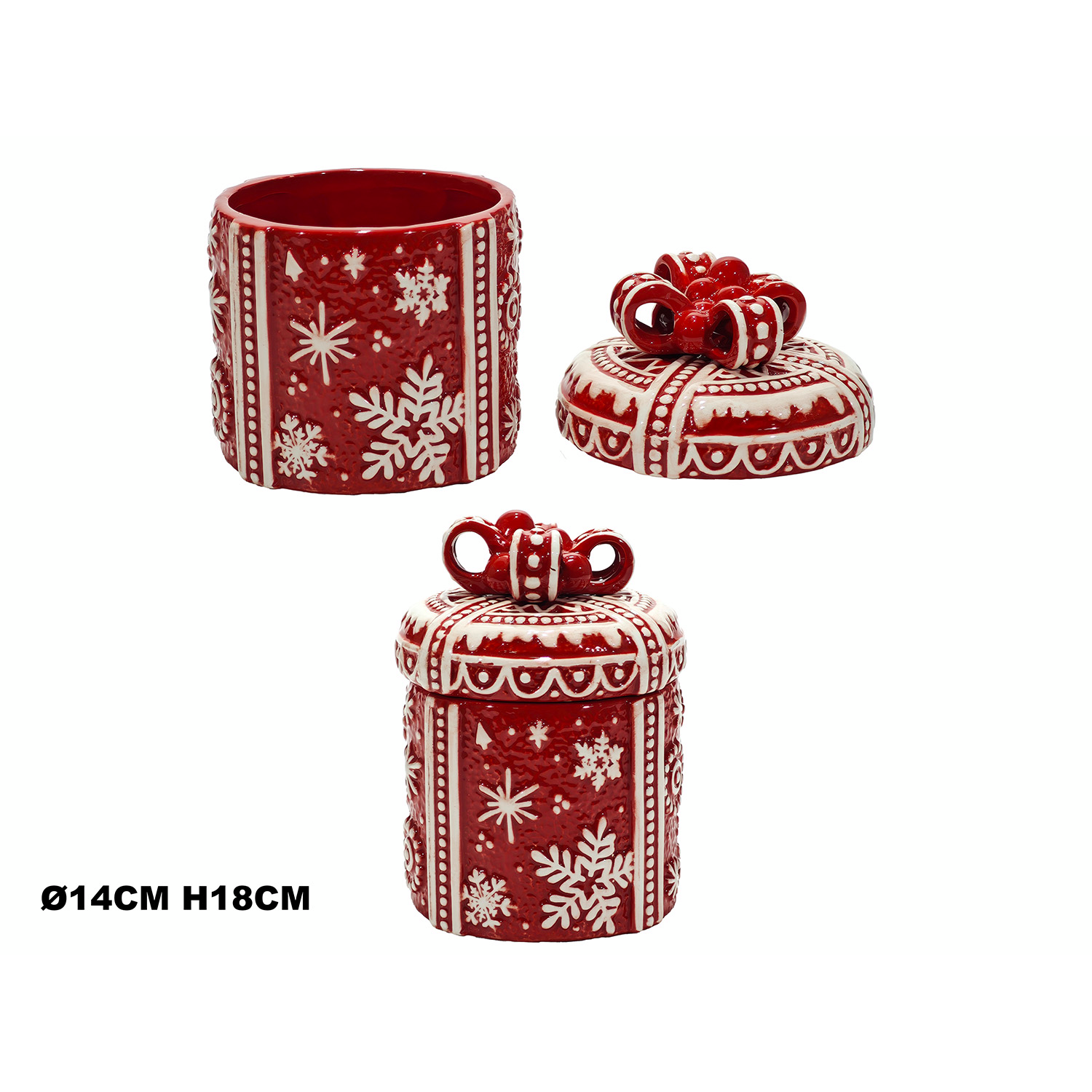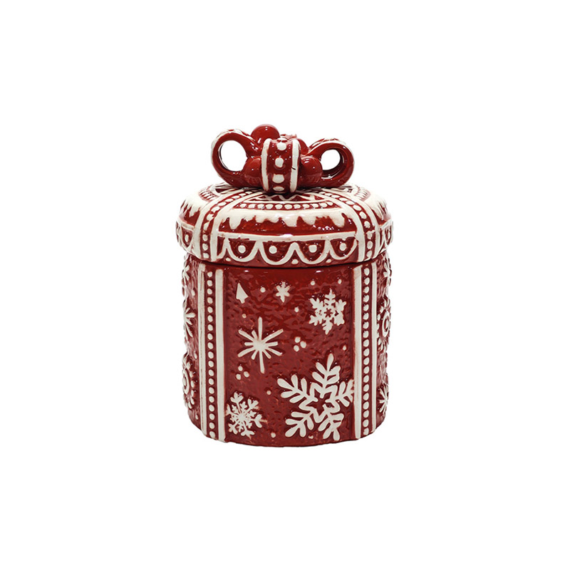 Χριστουγεννιάτικο κουτί δώρου μεταλλικό σε σχήμα γιορτινού δέματος με διαστάσεις 14x18cm σε κόκκινο χρώμα