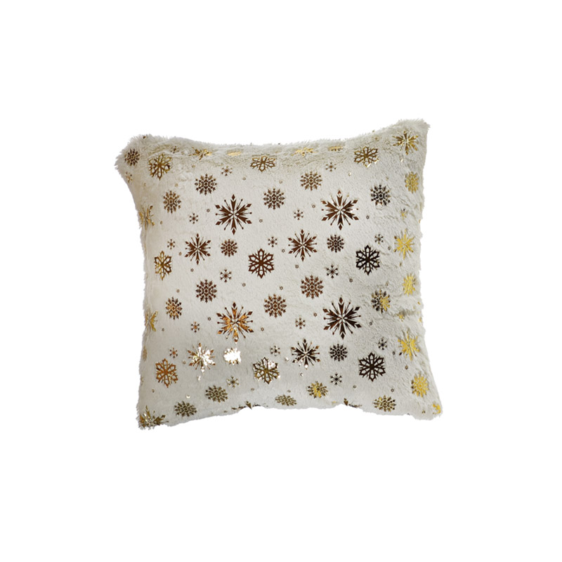 Χριστουγεννιάτικο μαξιλάρι γούνινο σε λευκό χρώμα με χρυσές λεπτομέρειες 45x45cm