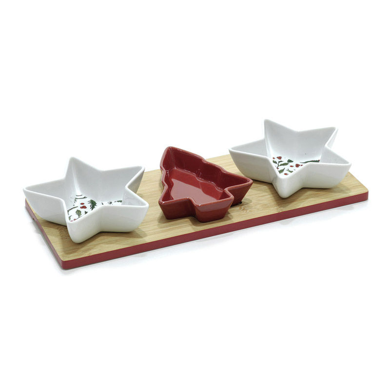 Χριστουγεννιάτικο σετ 4 τμχ με ξύλινη βάση και 3 μπολάκια 33x12cm