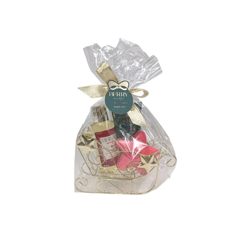 Χριστουγεννιάτικο σετ δώρου με αφρόλουτρο, κρέμα σώματος & bath bomb σε χρυσό έλκηθρο 23x8x16cm