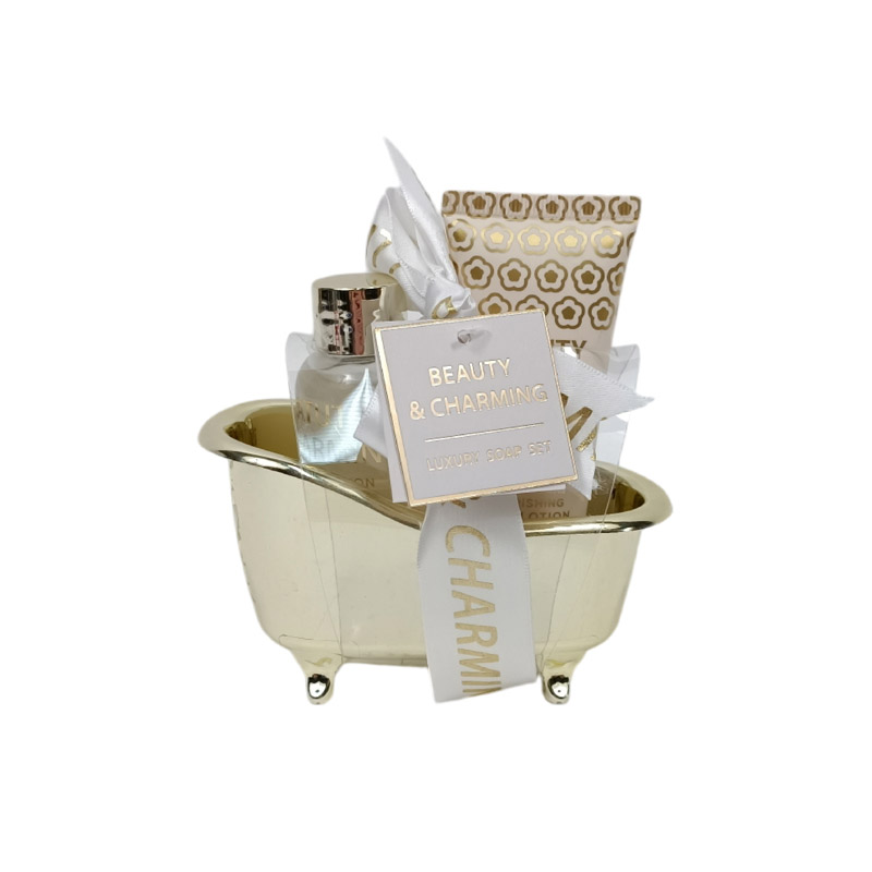 Χριστουγεννιάτικο σετ δώρου με κρεμοντούς και κρέμα σώματος σε χρυσή μπανιέρα 12x6x10cm
