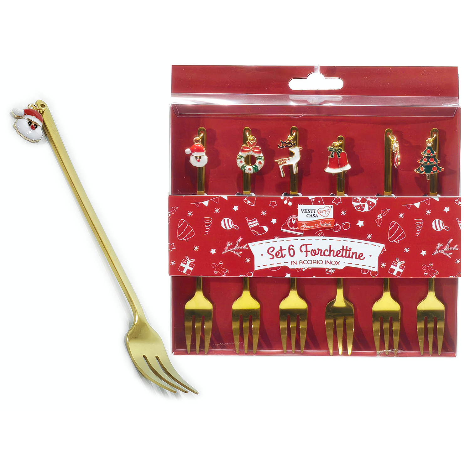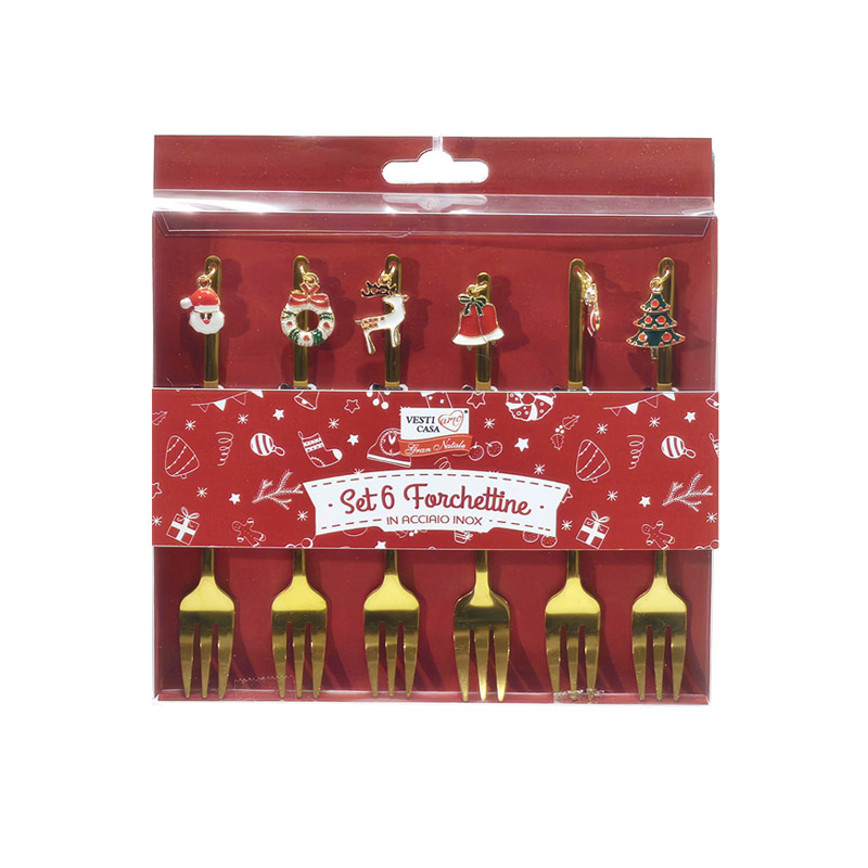 Χριστουγεννιάτικο σετ πιρούνια 6τμχ με μικρό στολίδι σε χρυσό χρώμα