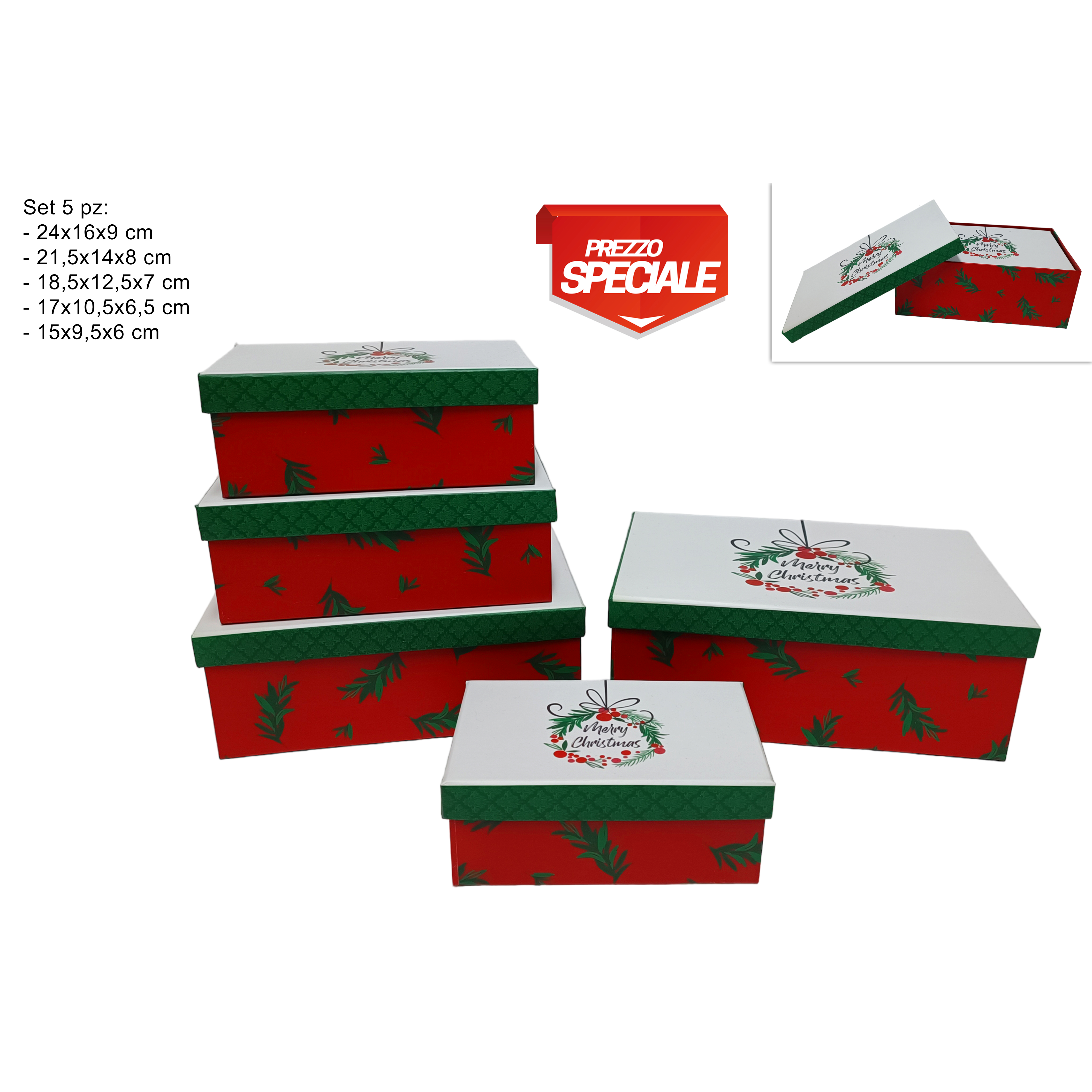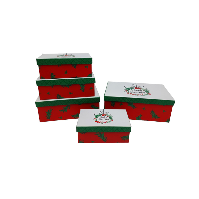 Σετ 5 χριστουγεννιάτικα κουτιά δώρου ορθογώνια με φύλλα και μούρα